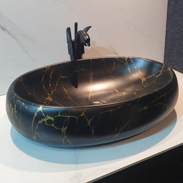 Ceramic Counter Top / Table Top Wash Basin in Black Gold Color This Countertop Basin is Perfect...