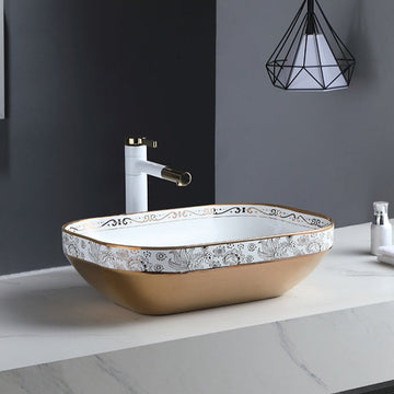 Ceramic Rectangle Counter Top Wash Basin in Gold Black Color This Countertop Basin is Perfect...