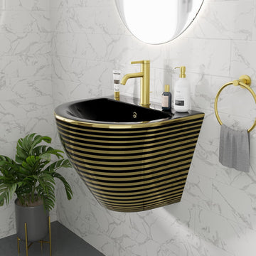 B Backline Ceramic Half Pedestal Wall Mount Wash Basin In Black Glossy Color Beautiful & Functional -This...