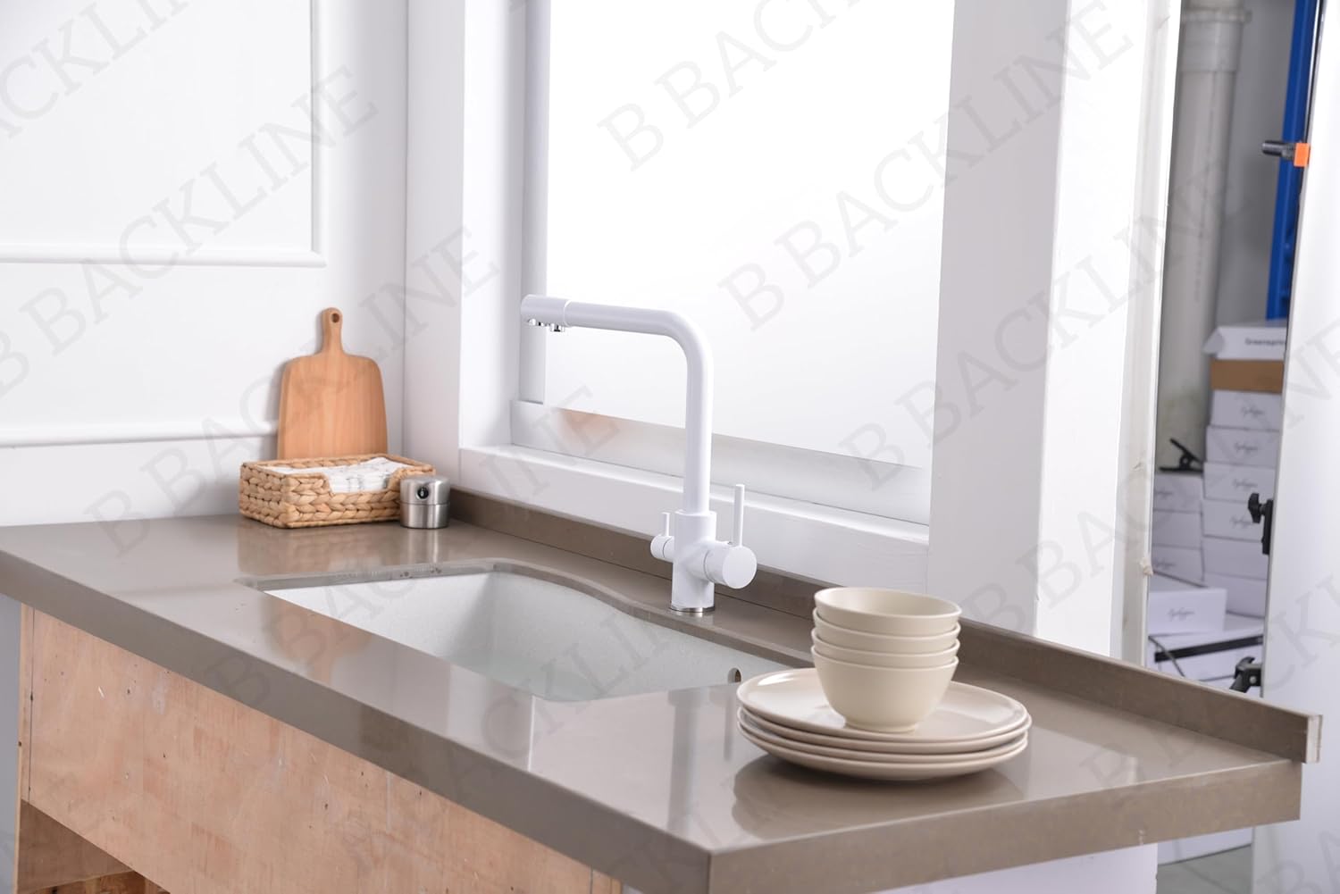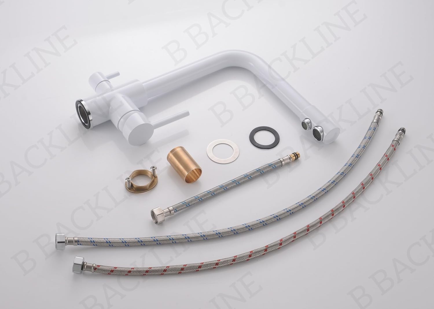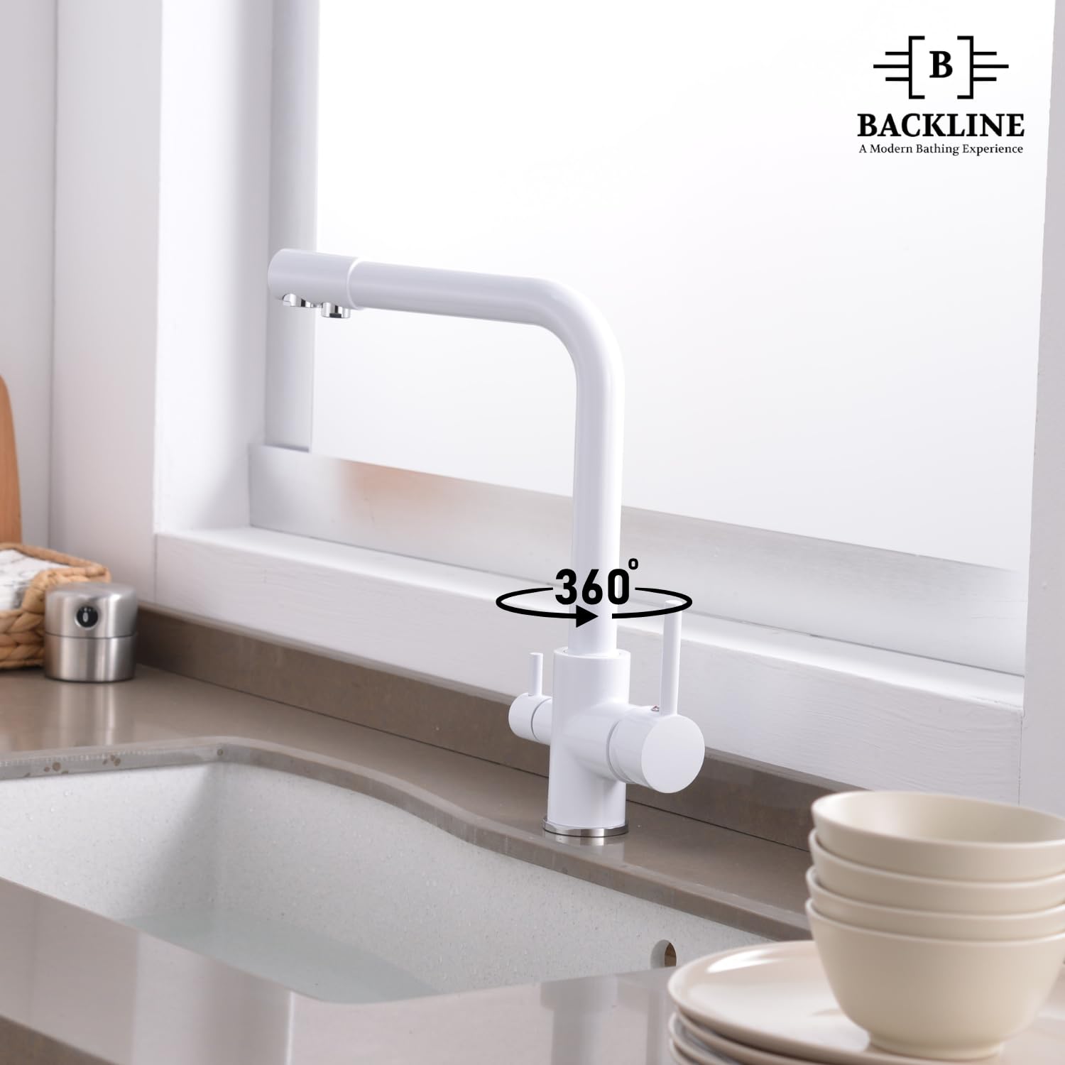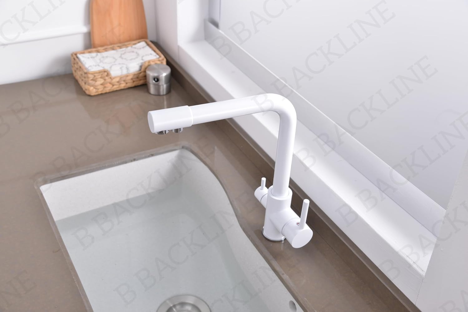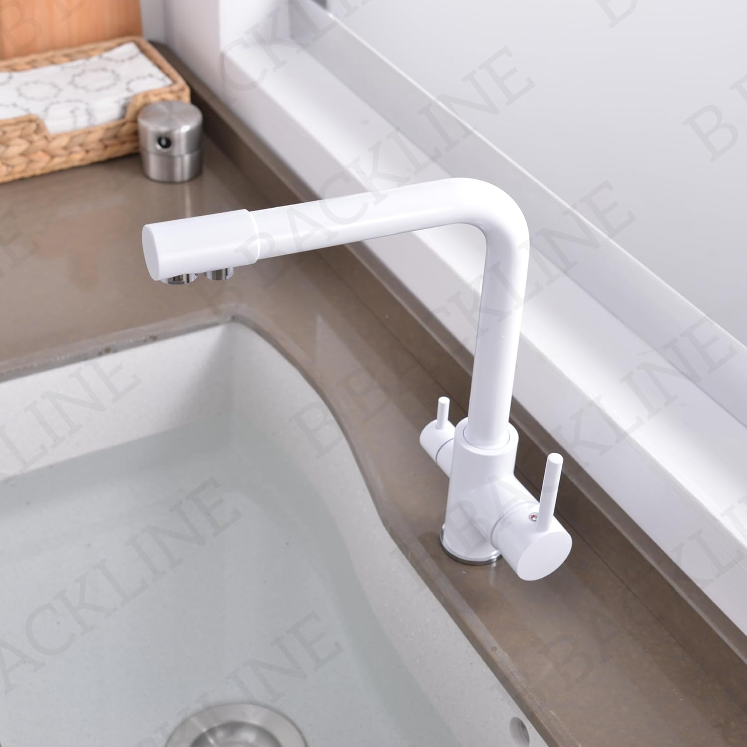 B Backline Brass Kitchen Faucet Tap Double Lever Hole RO Drinking water tap kitchen faucet (White Glossy)