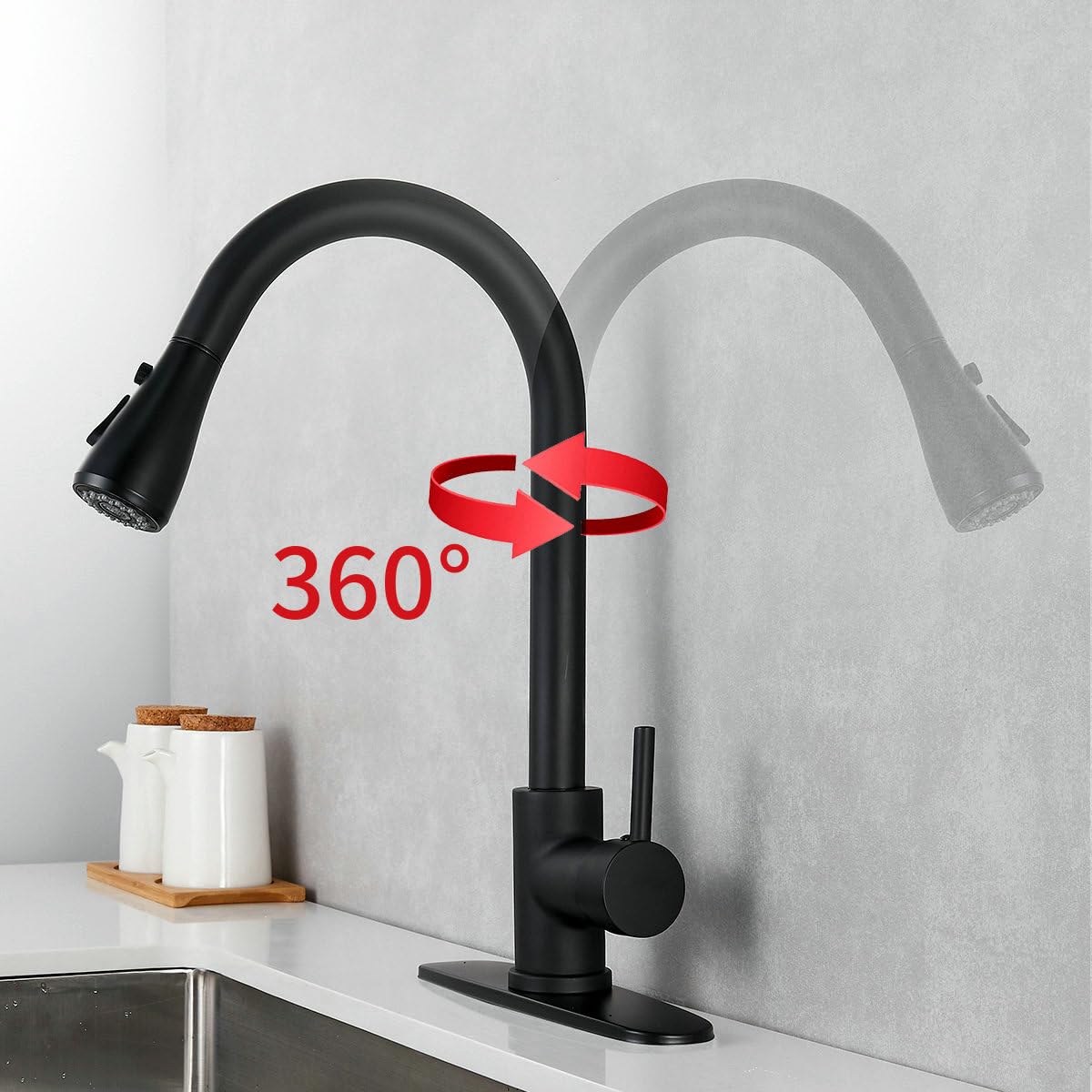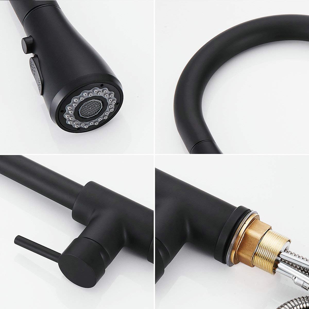 B Backline Brass Kitchen Tap Faucet Pull Out Kitchen Faucet Multi Functional Tap Single Hole 360 Degree black kitchen faucet (Black)
