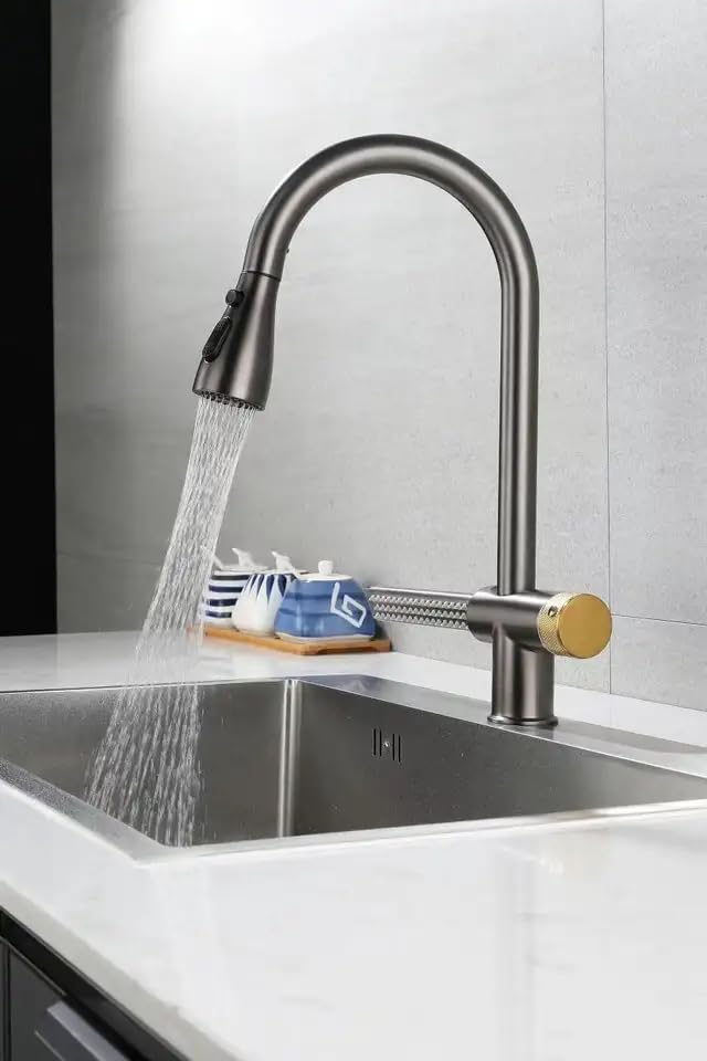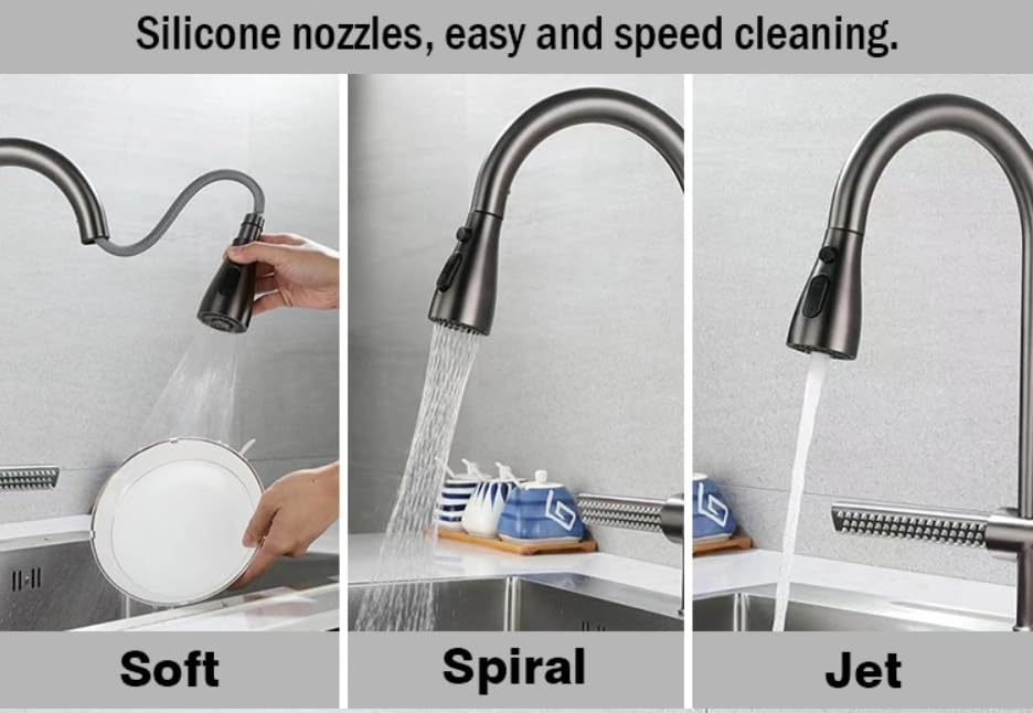 - Our Pull-out kitchen faucet with sprayer fits for almost all kitchen sinks, such as a kitchen sink faucet, rv kitchen faucet or farmhouse kitchen faucet. It's a must-have partner for your family or for travel.