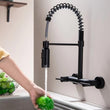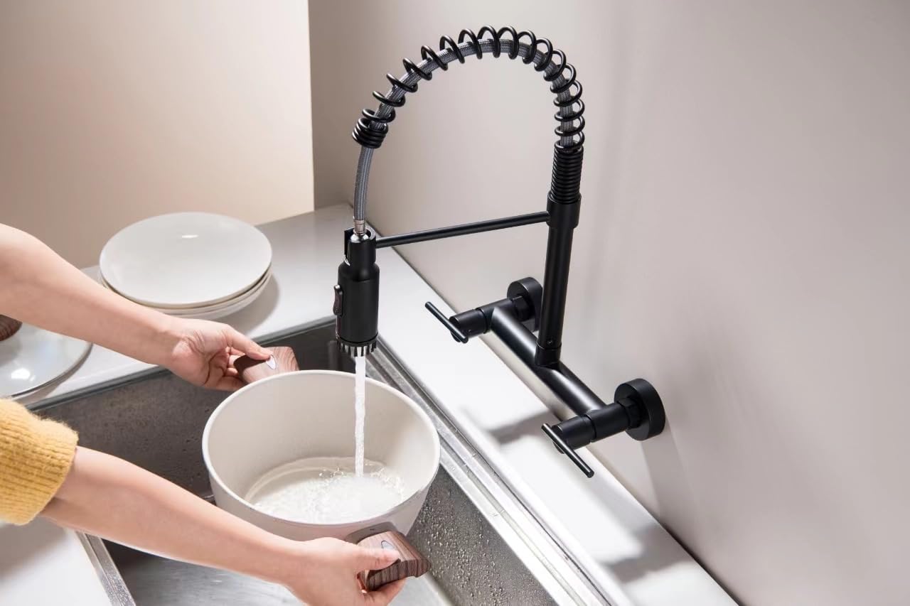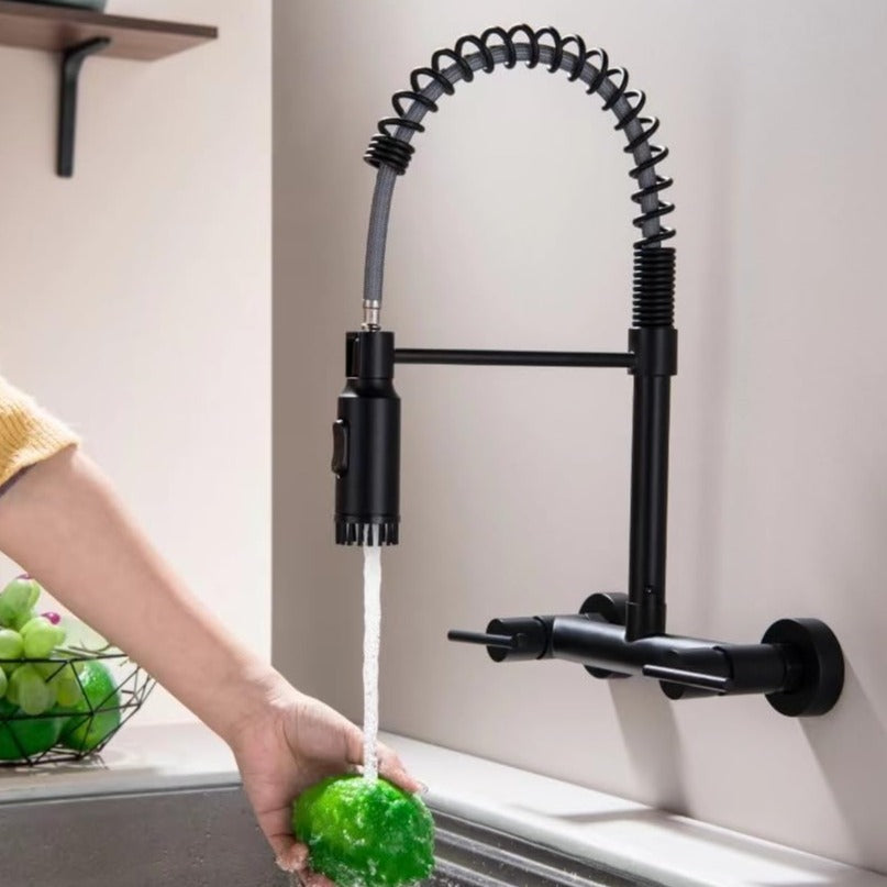 B Backline Brass Wall-Mount Sink Tap Hot & Cold Mixer Pullout Kitchen Faucet (Black Matt)