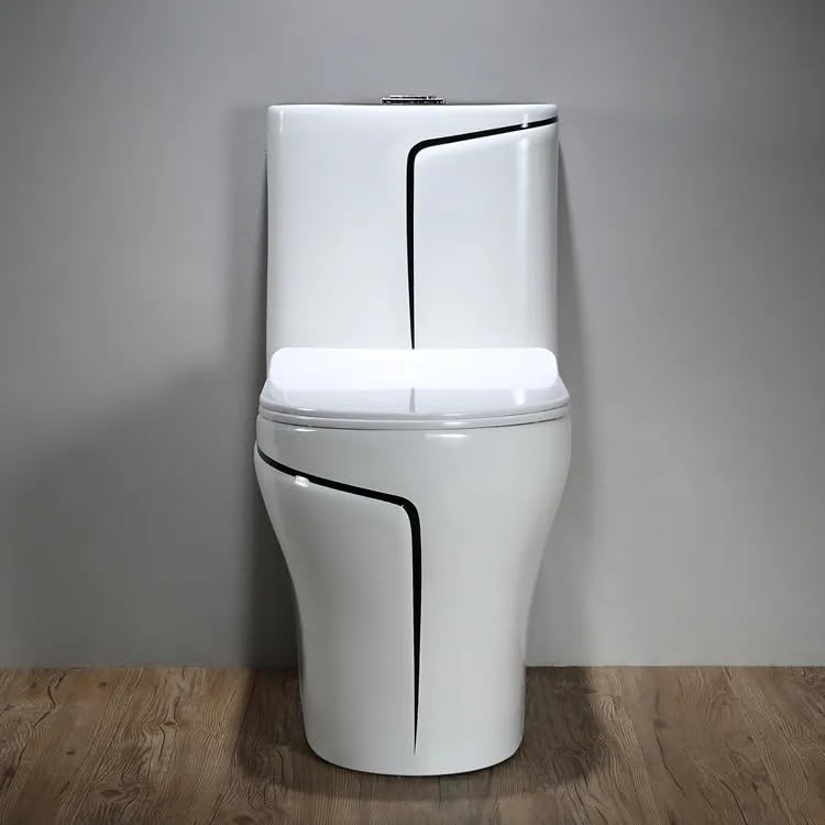 B Backline Ceramic Floor Mounted One Piece Water Closet Commode Western Toilet Syphonic Flushing / Commode / EWC / European Commode With Soft Close Seat Cover For Bathrooms S Trap Outlet Is From Floor , 12 Inches From Wall To Trap