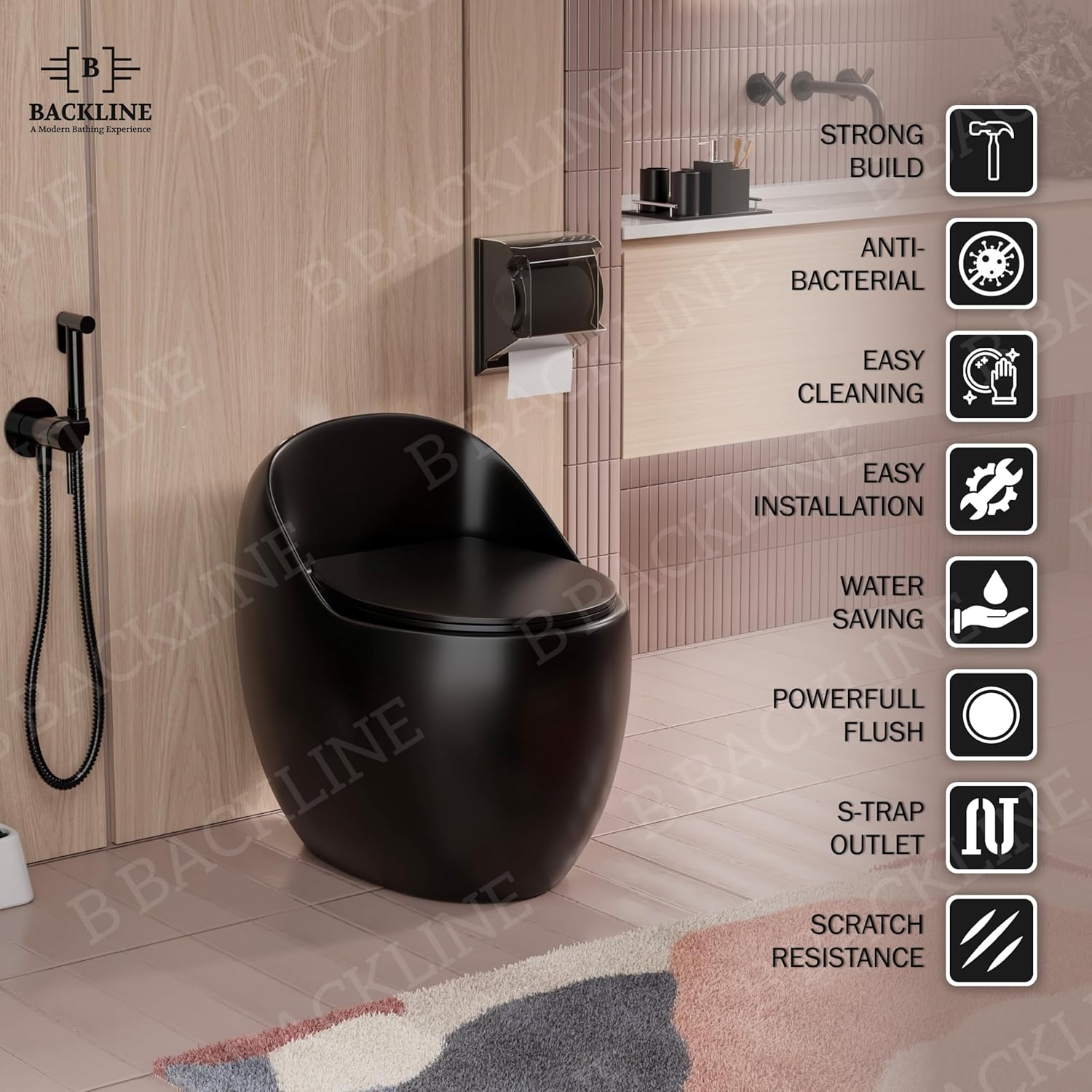 B Backline Ceramic One Piece Toilet for bathrooms in Black Matt Finish
