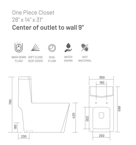 - Size of this Water Closet is 790 x 360 x 660 MM & S-Trap Distance is 9 Inch (That is minimum required distance from back wall to trap hole center to install this water closets.)