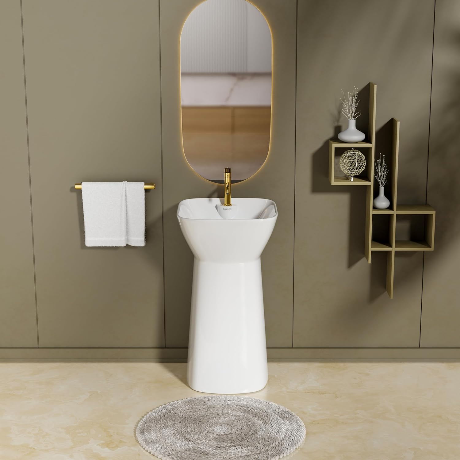 - Installation- The Full Pedestal Wash Basin Has Easy Installation – Modern Pedestal Wash Basin Needs To Be Only Placed On The Floor And Fix It With The Bolts. Note: Fitting Bolt And Waste And Tap Are Not Included.