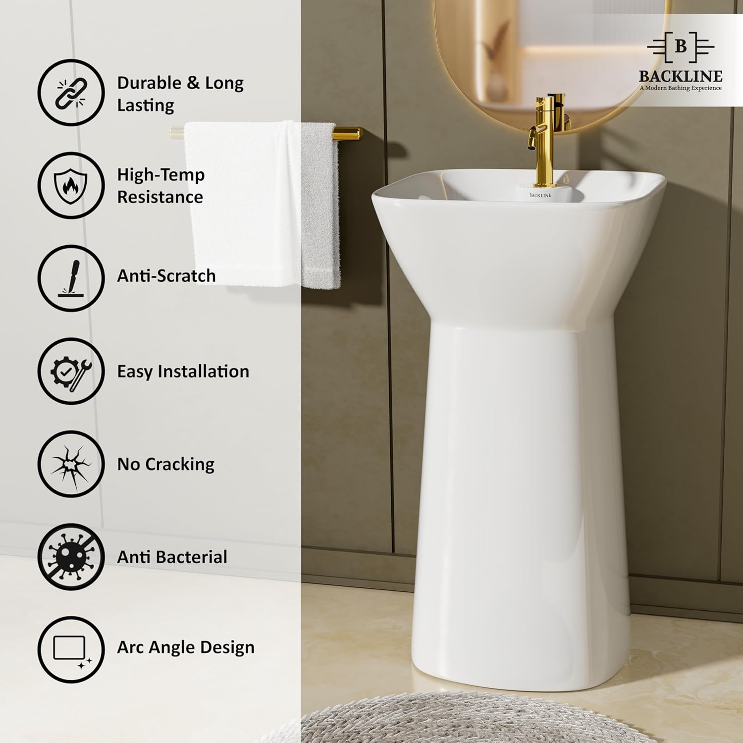 B Backline Ceramic Pedestal Free Standing Wash Basin Square 17 Inch White