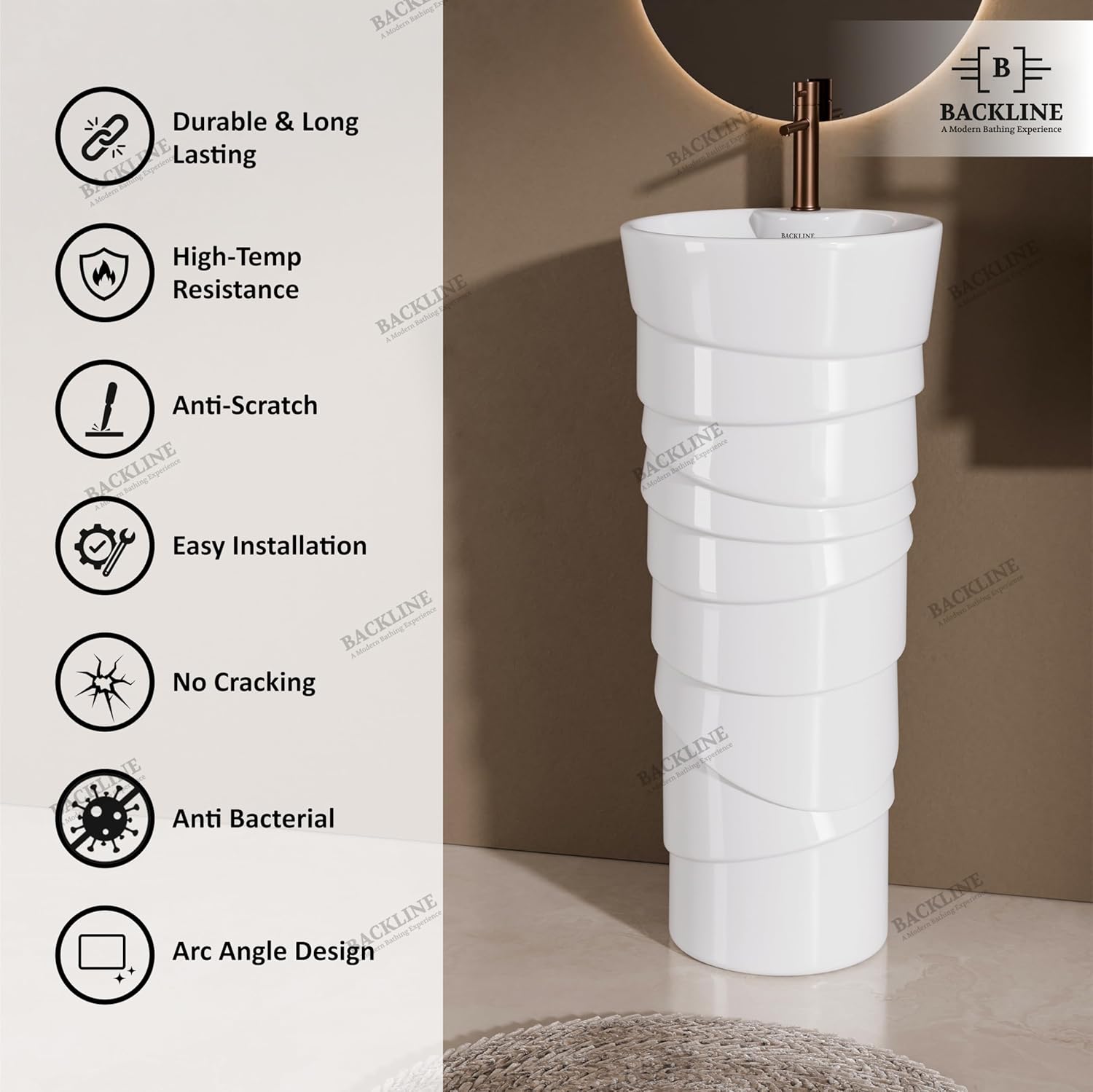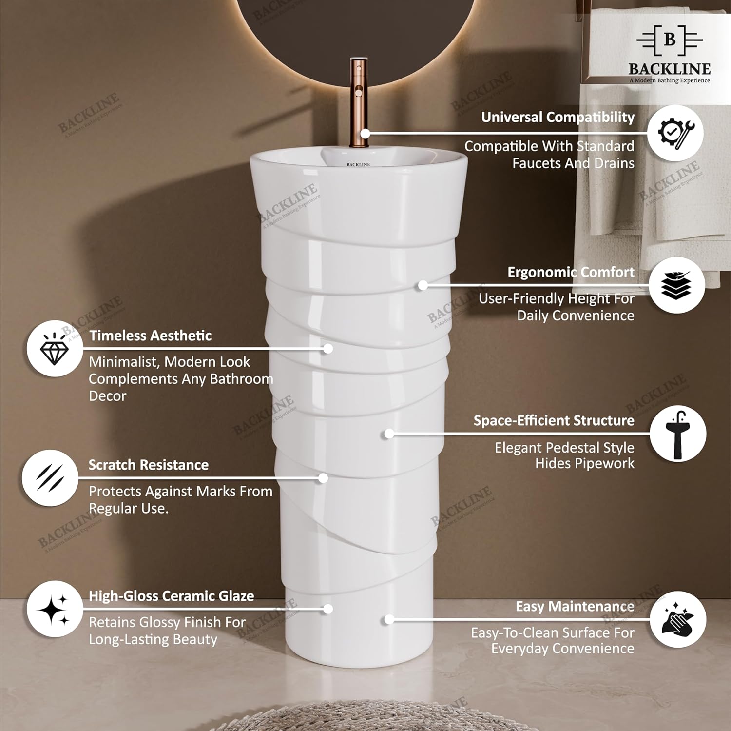 - Installation- The Full Pedestal Wash Basin Has Easy Installation – Modern Pedestal Wash Basin Needs To Be Only Placed On The Floor And Fix It With The Bolts. Note: Fitting Bolt And Waste And Tap Are Not Included.