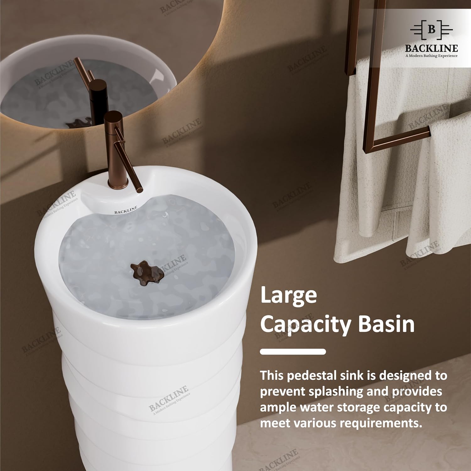 B Backline Ceramic Pedestal Wash Basin Round 15 Inch White