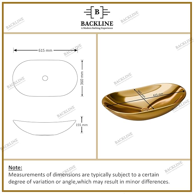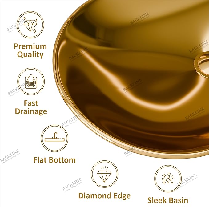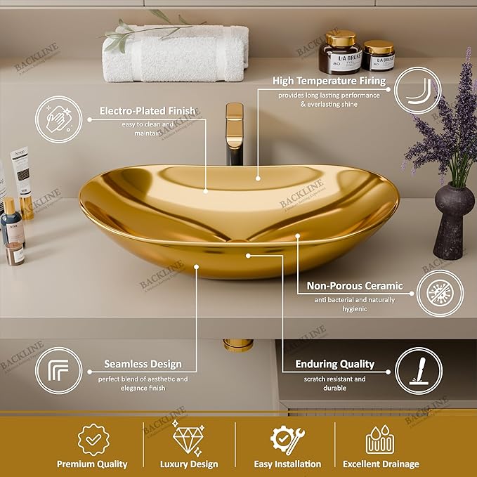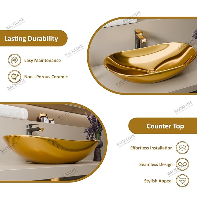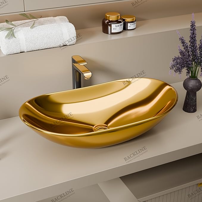 B BACKLINE Ceramic Table Top Vessel Sink Wash Basin 24 X 14 X 6 Inch (Gold)