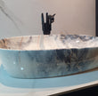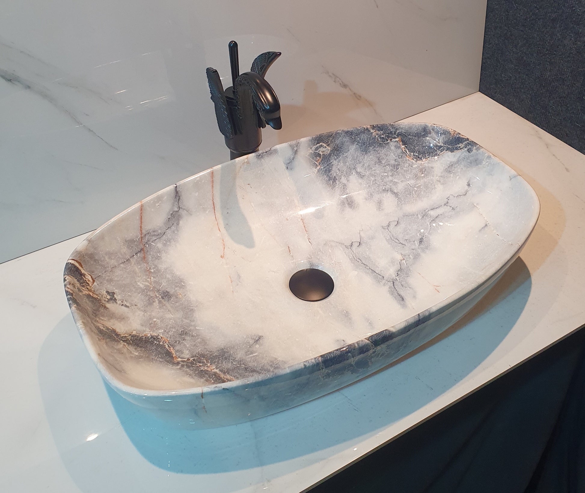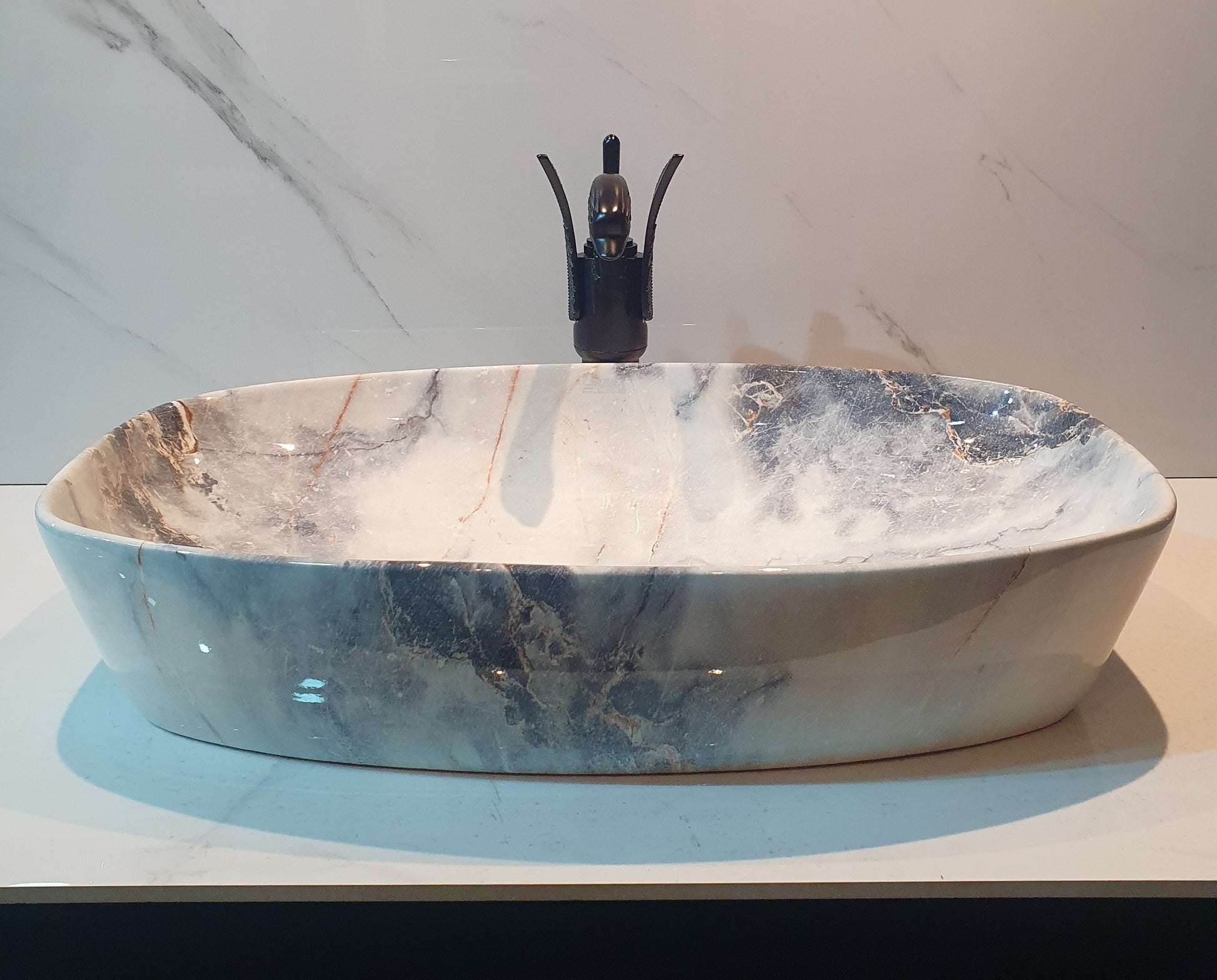 - The stylish basin will sit beautifully on your counter top with its defined yet smooth edges. This basin will adorn you bathroom like no other. With a stunning basin bowl design this basin is suited to both counter mounted and wall mounted taps.