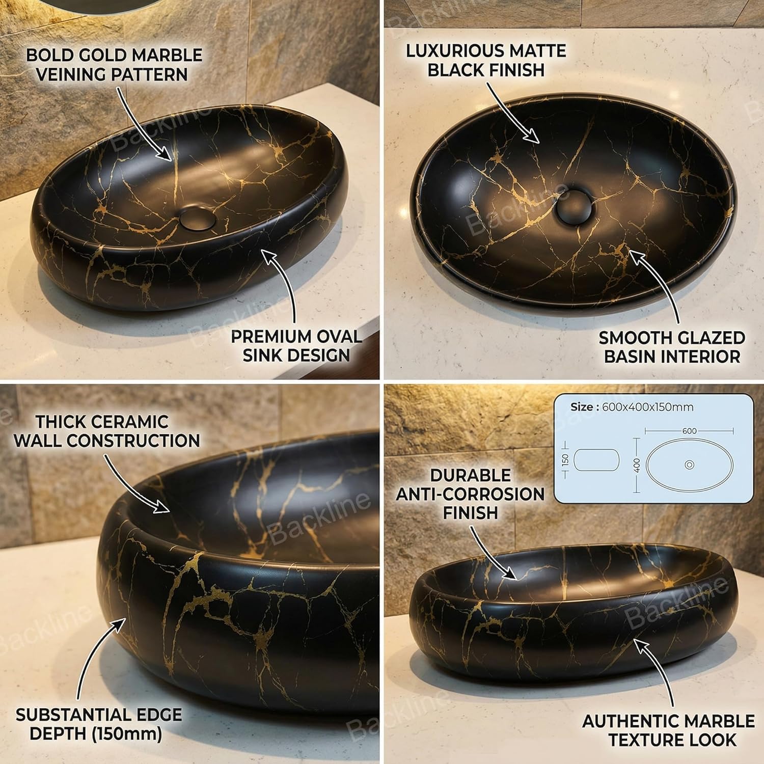 B Backline Ceramic Table Top Wash Basin 60x40 cm Black matt