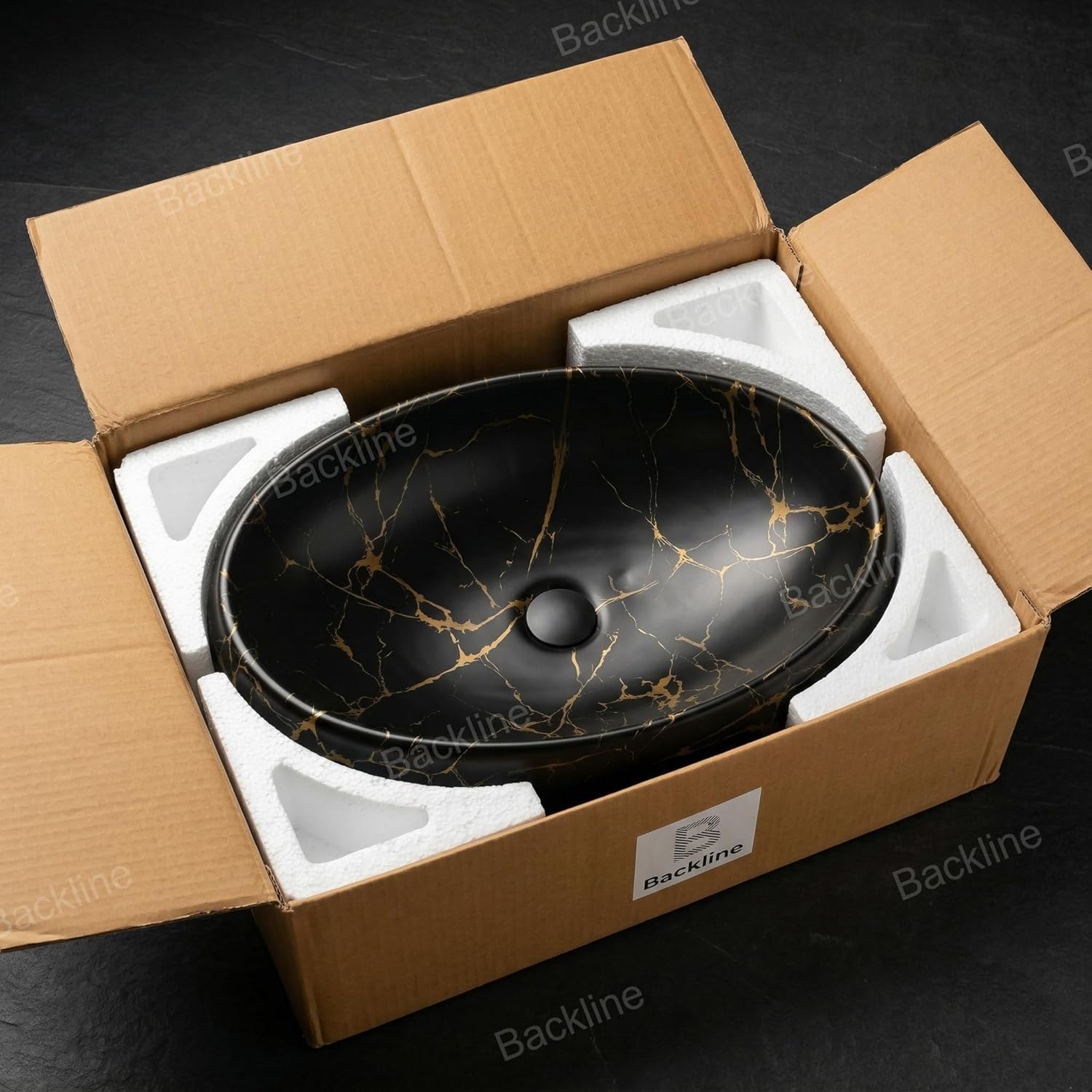 Ceramic Oval Shape Table Top Wash Basin Black Matt Color