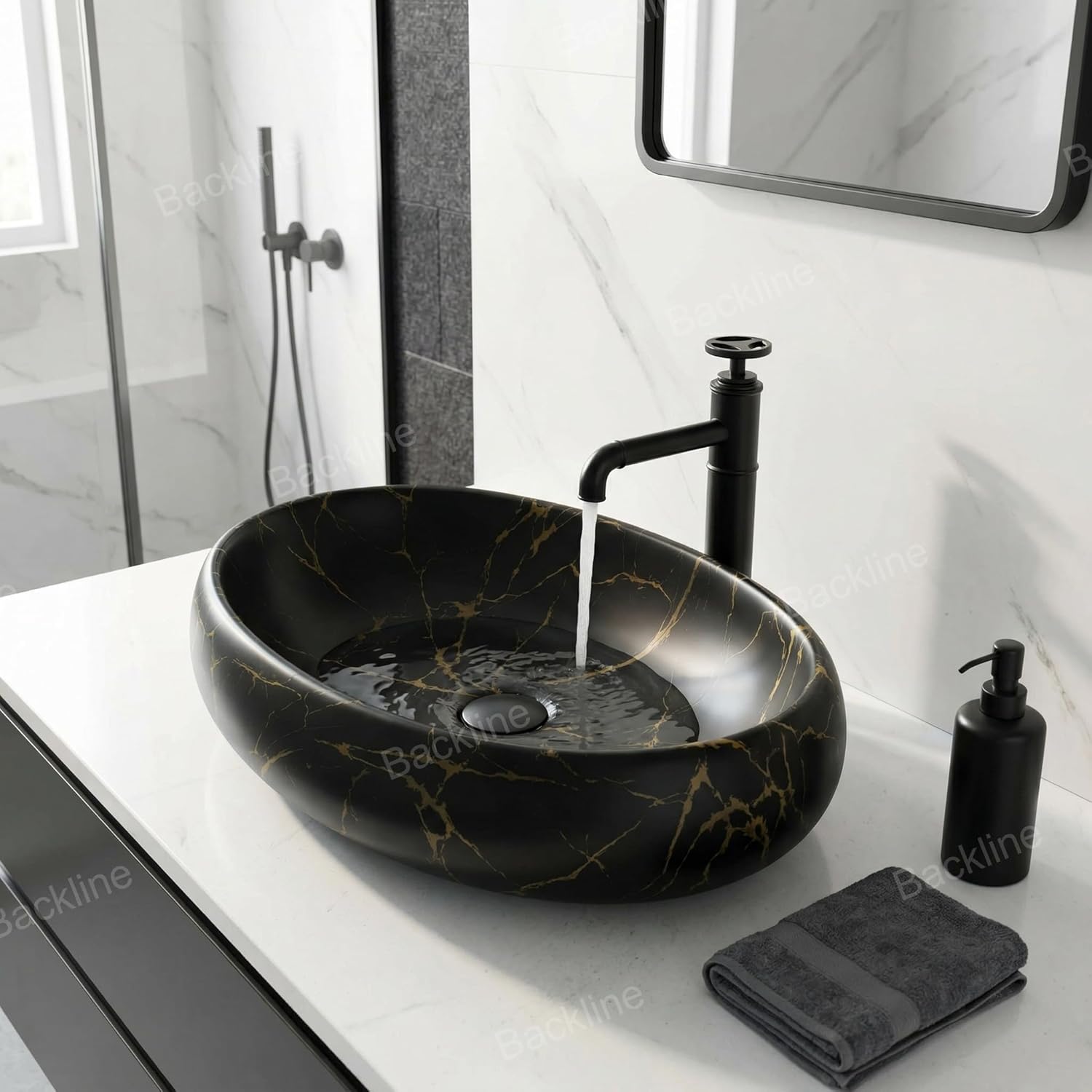 B Backline Ceramic Bathroom Countertop or Tabletop Wash Basin Glossy Designer sink or Wash basin For Lavatory, Bathrooms, Living room, Dining Room, Washroom