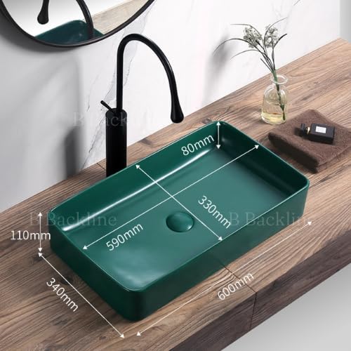 B Backline Ceramic Table Top Wash Basin Counter Top Bathroom Sink Wash Basin Art Basin For Bathrooms & Living Room 24 X 13.5 X 4 Inches (Green Matt)