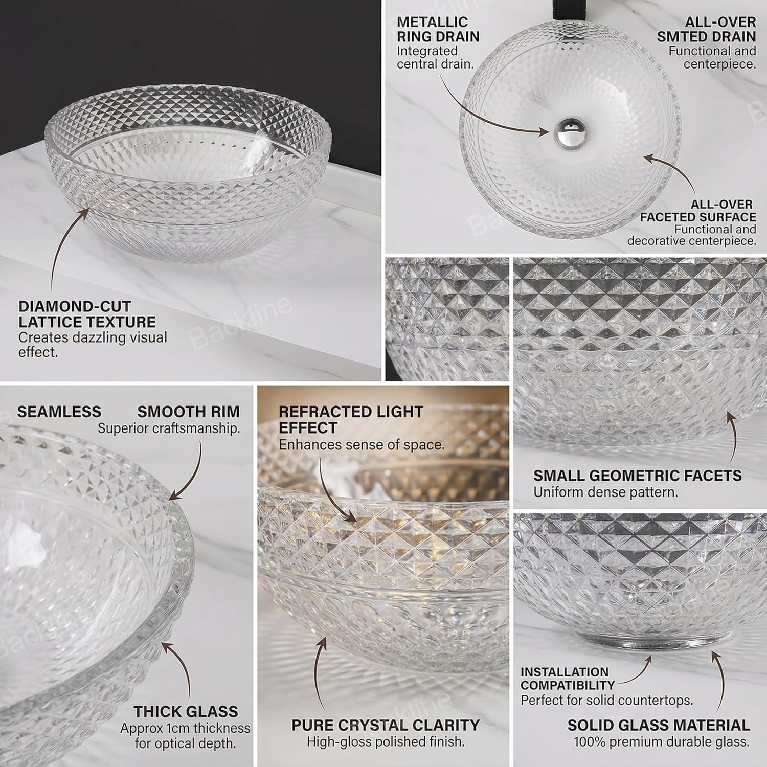 - Glass Wash Basin Crystal Art Above Counter Wash Basin, Sturdy And Durable, One-piece Baking, No Splicing Gaps, No Leakage, Not Easy To Yellow And Crack