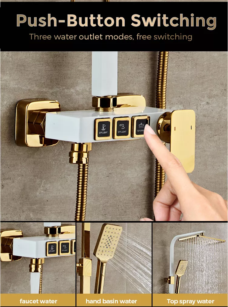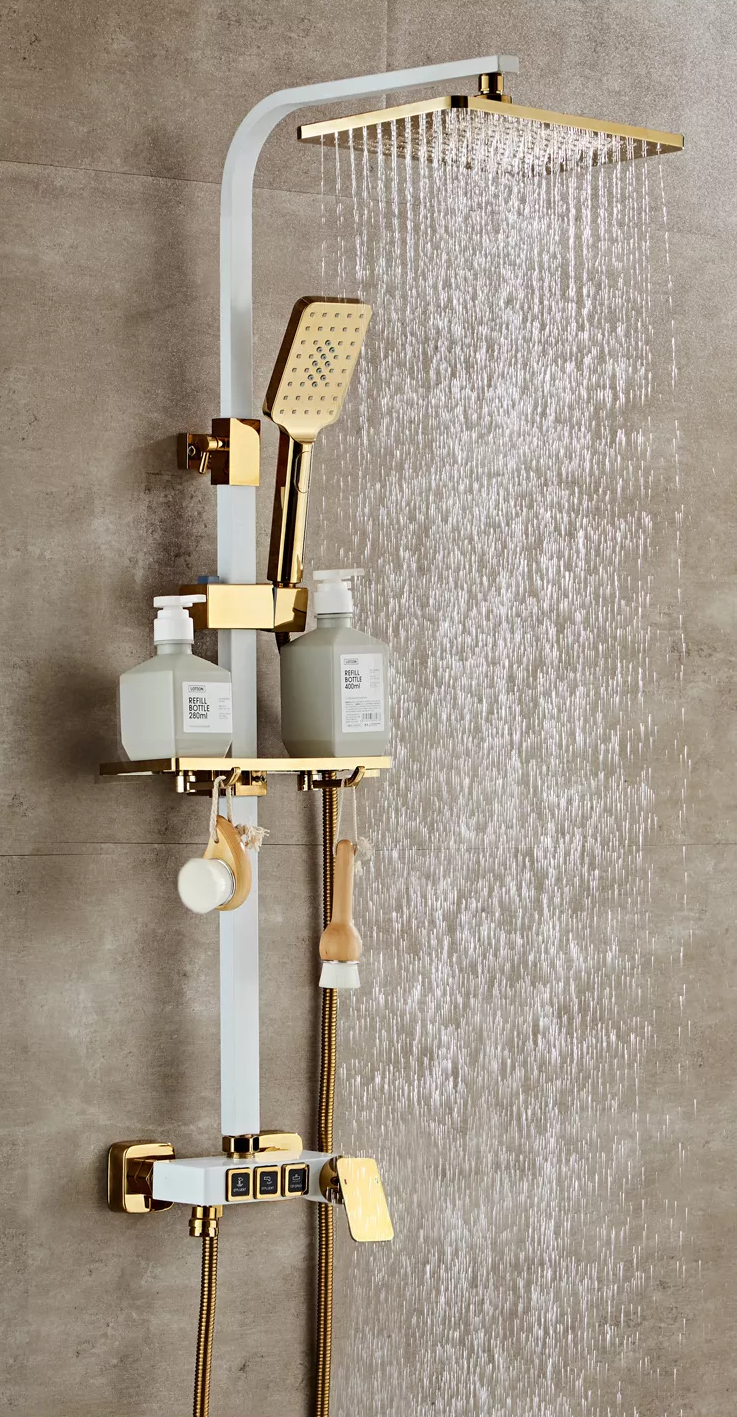 B Backline Luxury Shower Panel / Shower Set Rainfall Shower For Bathrooms (White Gold)