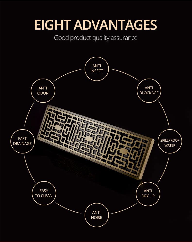 B Backline Bathroom Floor Water Drain Grating with Anti-Foul Cockroach Trap Antique Finish 12" X 4" Inches