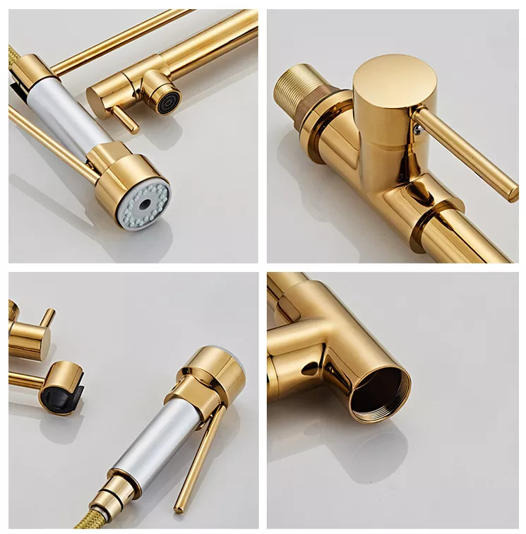 Pull-Out Kitchen Sink Mixer Faucet In Golden Color