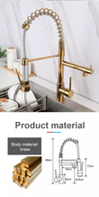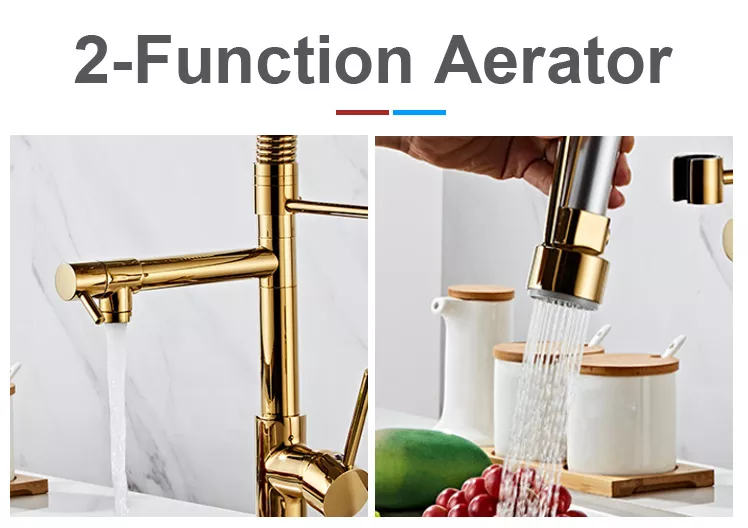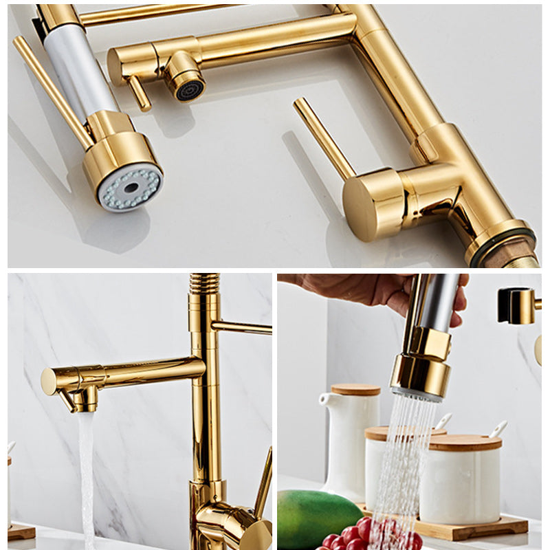 B Backline Brass Single Lever Sink Mixer 360° Rotatable Pull-Down Sprayer Kitchen Faucet with Multi-Function Tap Gold