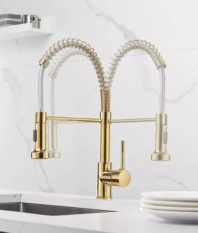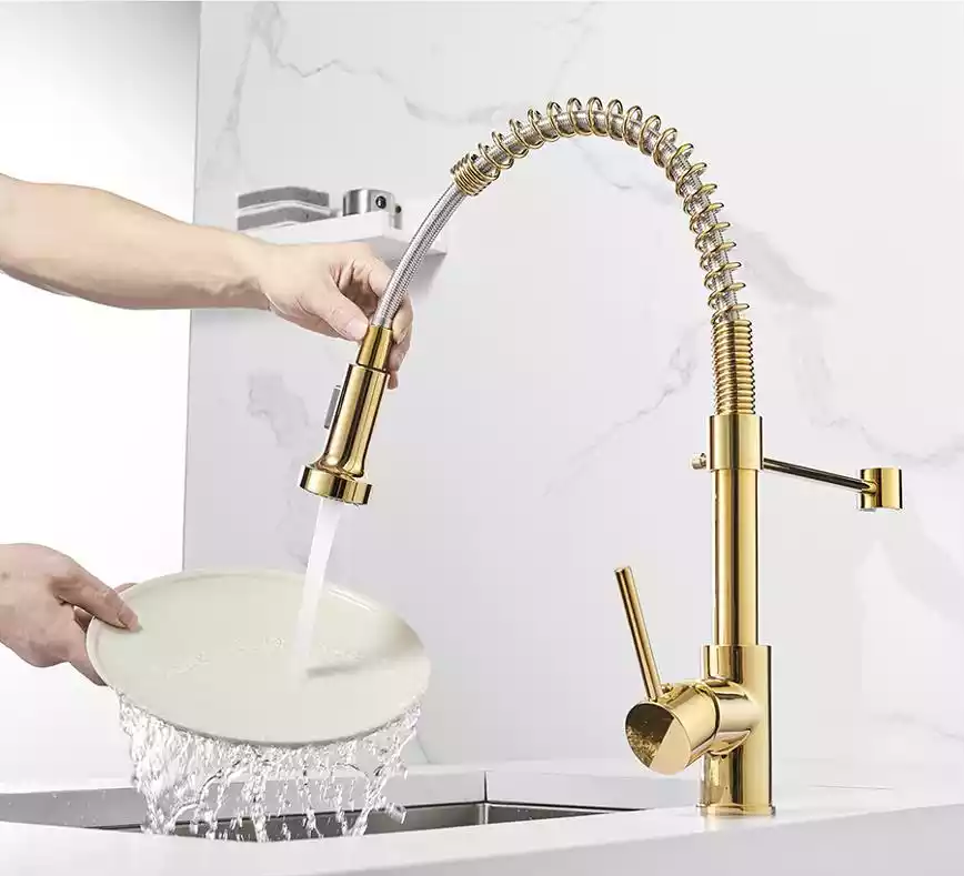 Pull-Down Kitchen Sink Mixer Tap In Golden Color