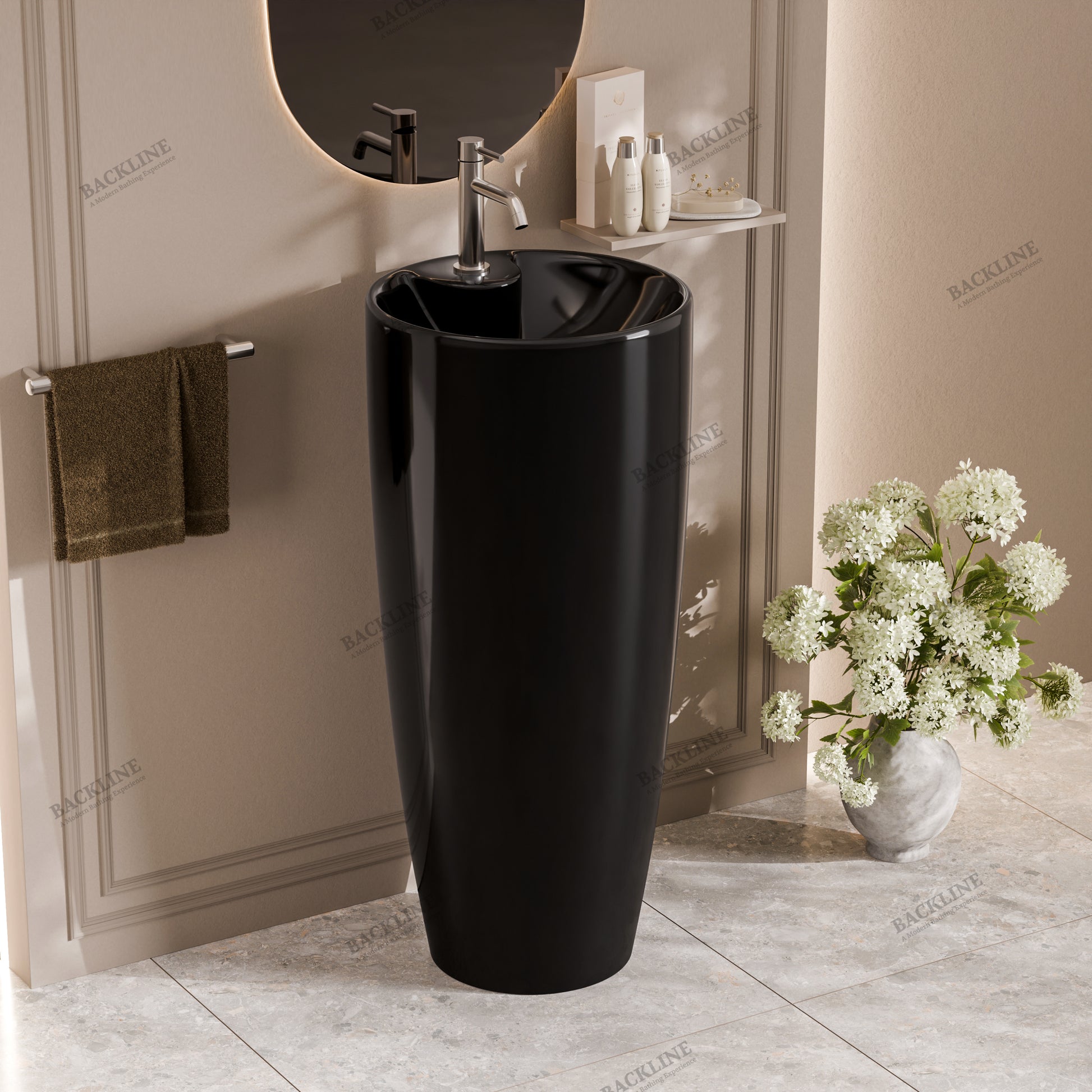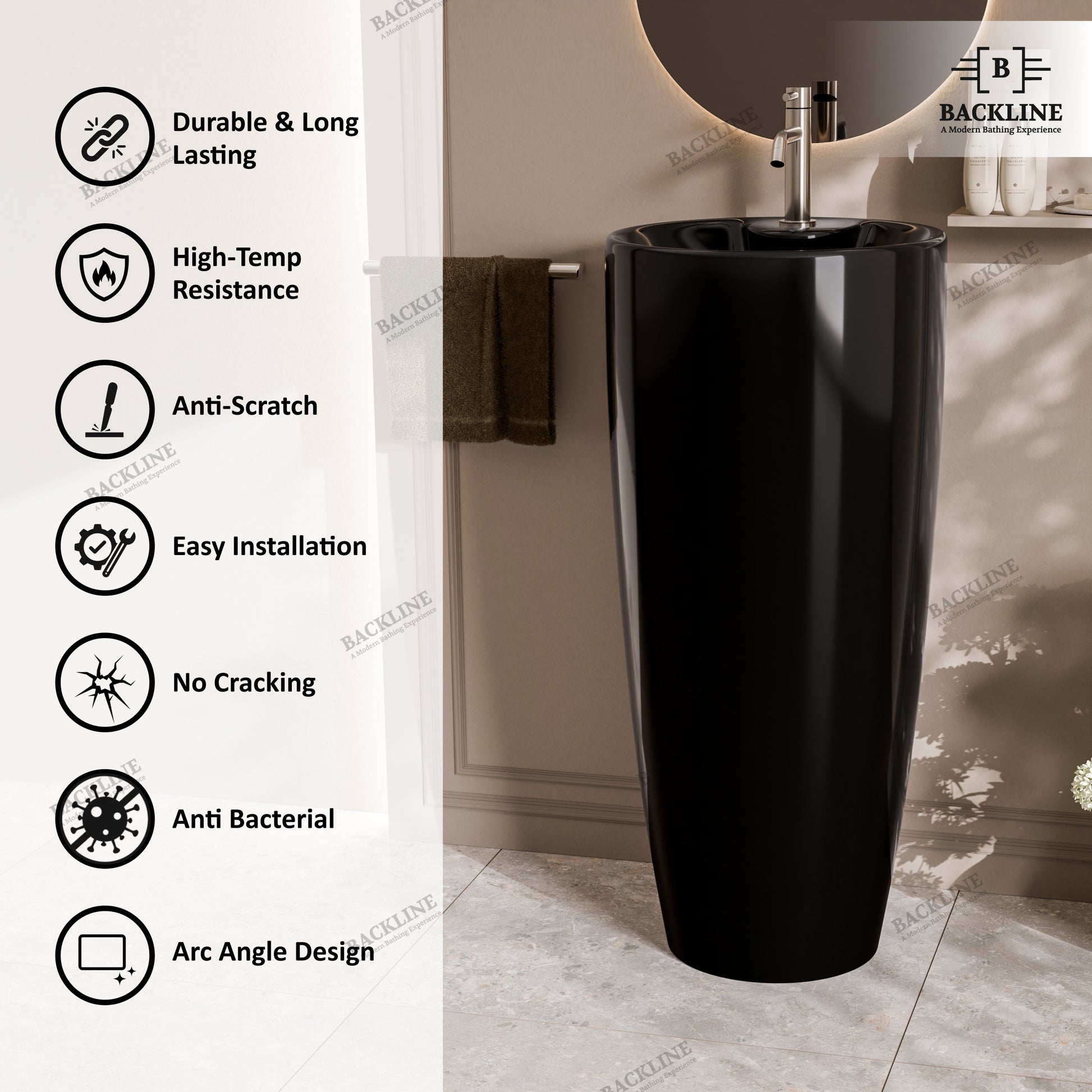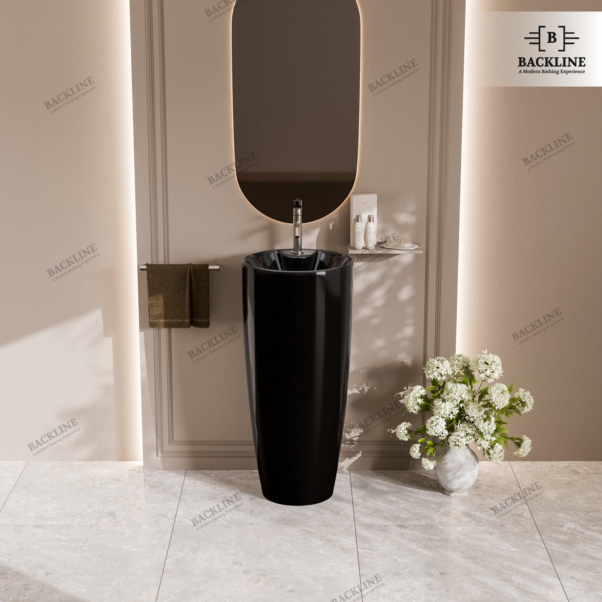 B Backline Ceramic Pedestal Wash Basin Round 15 X 15 X 34 Inch Black Glossy