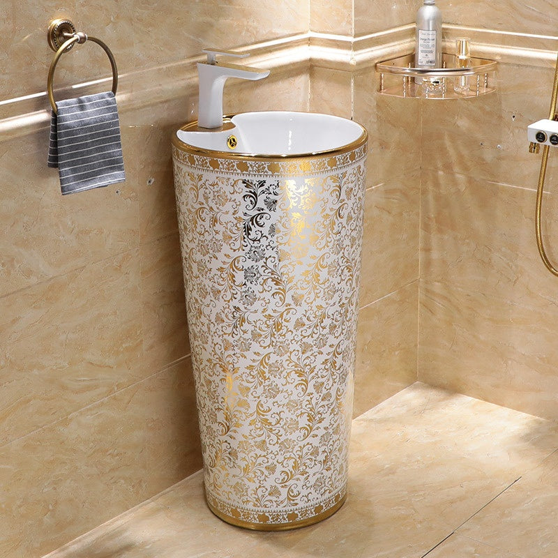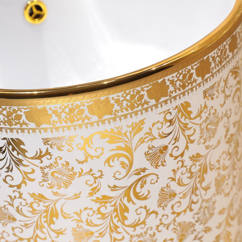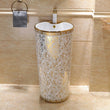 Ceramic Round Pedestal Free Standing Wash Basin In Golden Color