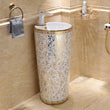 B Backline Ceramic Pedestal Free Standing Wash Basin Round 16 x 16 x 32 Inch White Gold
