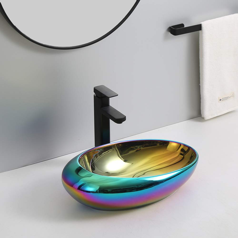 B Backline Ceramic Premium Designer Table Top Over Counter Vessel Sink Wash Basin for Bathroom 20 X 12 X 5.5 Inch