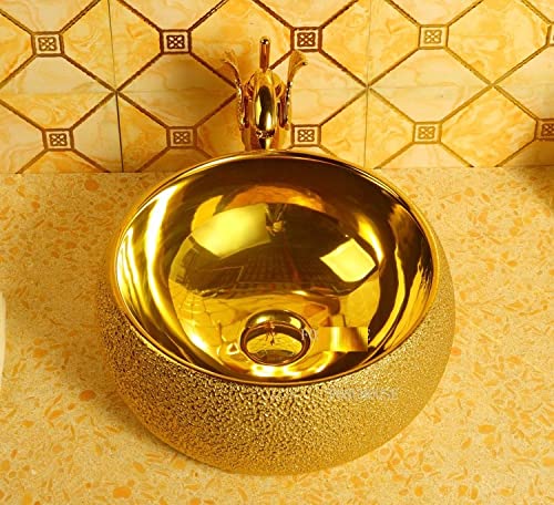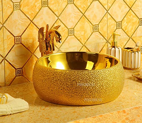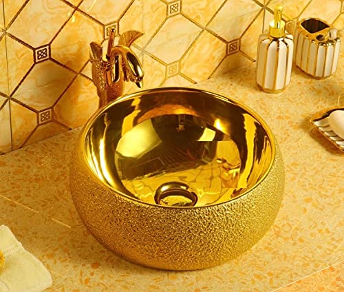 Ceramic Round Counter Top Wash Basin Gold Glossy