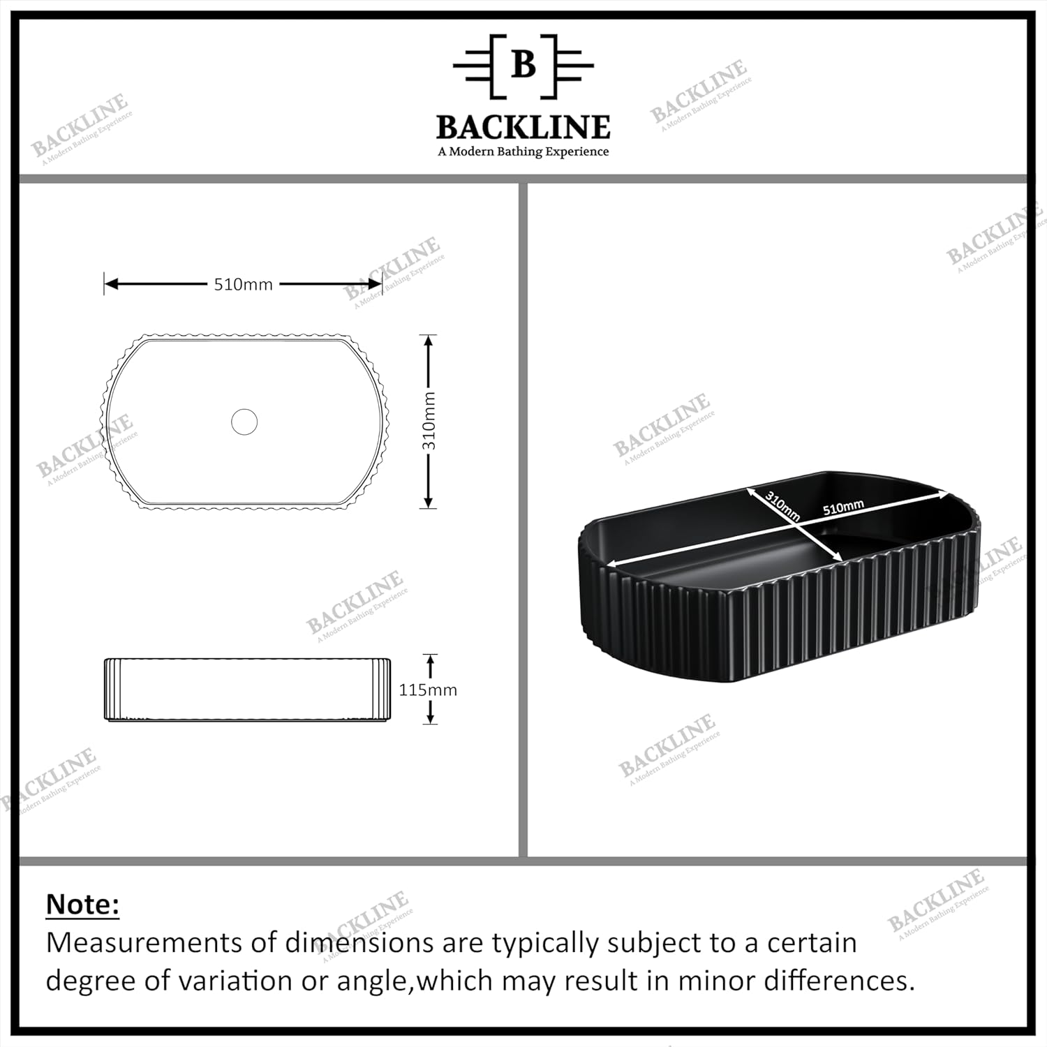 B Backline Ceramic Table Top, Counter Top Wash Basin 20 X 12.3 X 4.5 Inches