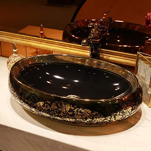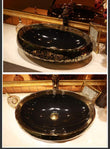 B Backline Ceramic Table Top, Counter Top Wash Basin 24 X 16 X 6 Inch Black Gold