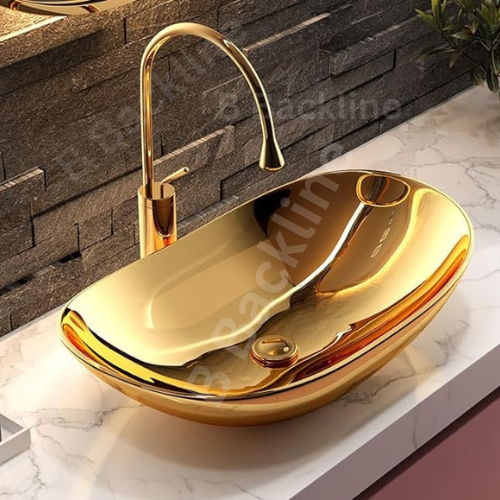 B Backline Ceramic Table Top, Counter Top Wash Basin 25 X 14 X 6 Inches Gold Glossy