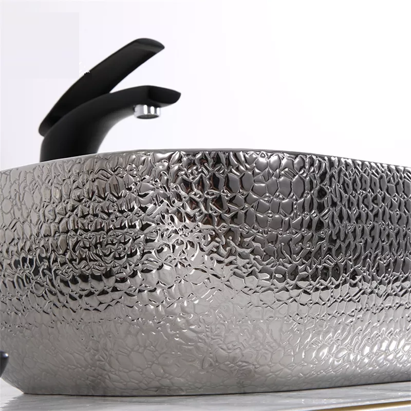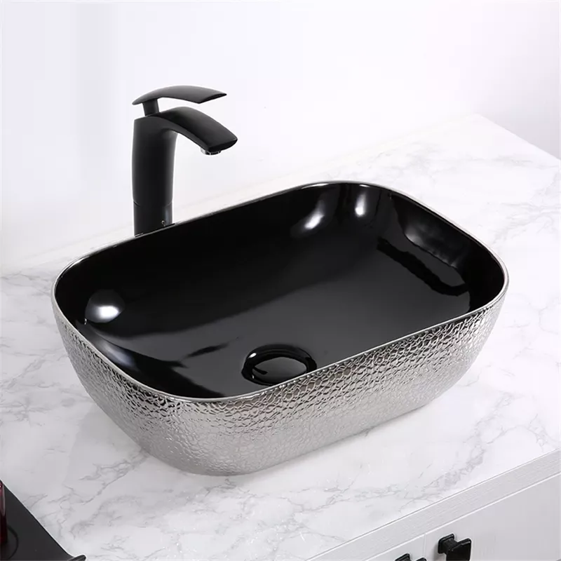 Ceramic Rectangle Counter Top Wash Basin Silver Black Color