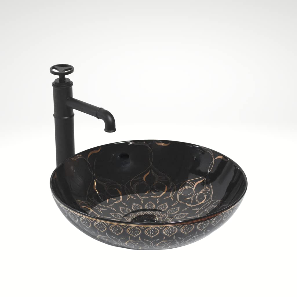 Ceramic Round Shape Counter Top Wash Basin Silver Black Color