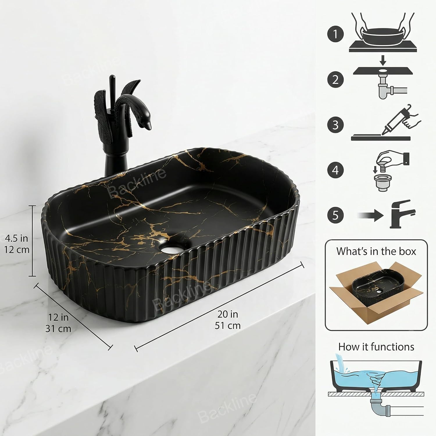 - The Table Top Basin has Easy Installation – Bathroom sink can be installed as Countertop sink, note: fitting bolt and waste and tap are not included.