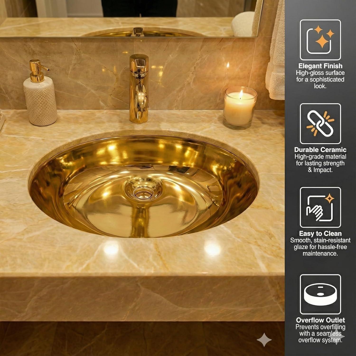 Ceramic Table Top Wash Basin 50 x 41 x 19 cm (Glossy Gold)