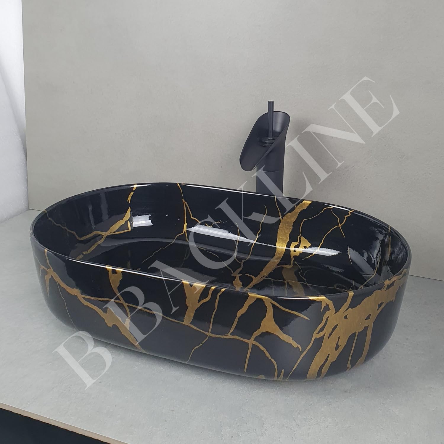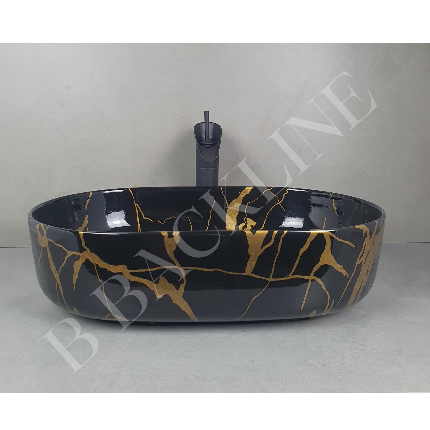 Ceramic Table Top Wash Basin 54 X 36 X 14.5 Cm (Gold Black Glossy Finish)