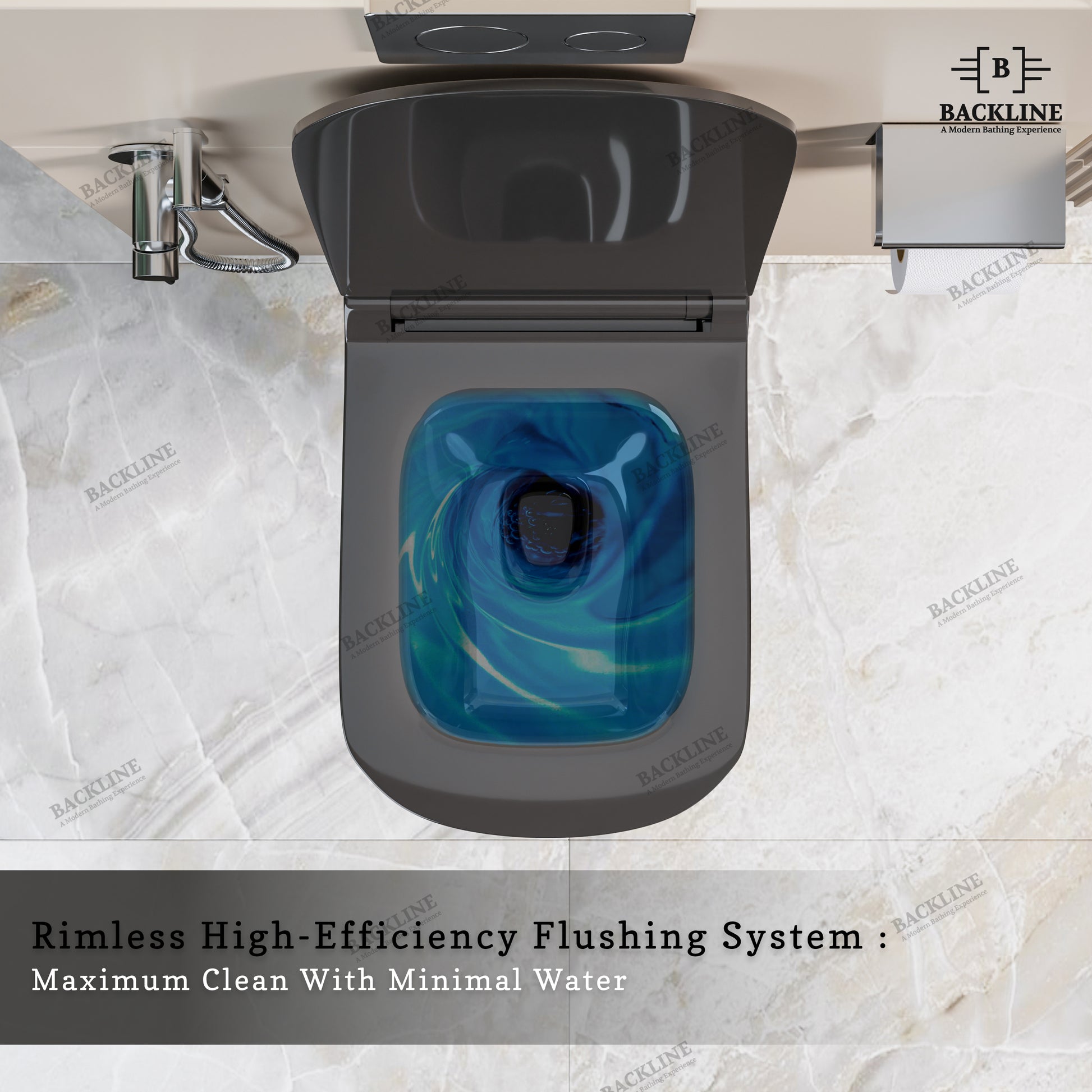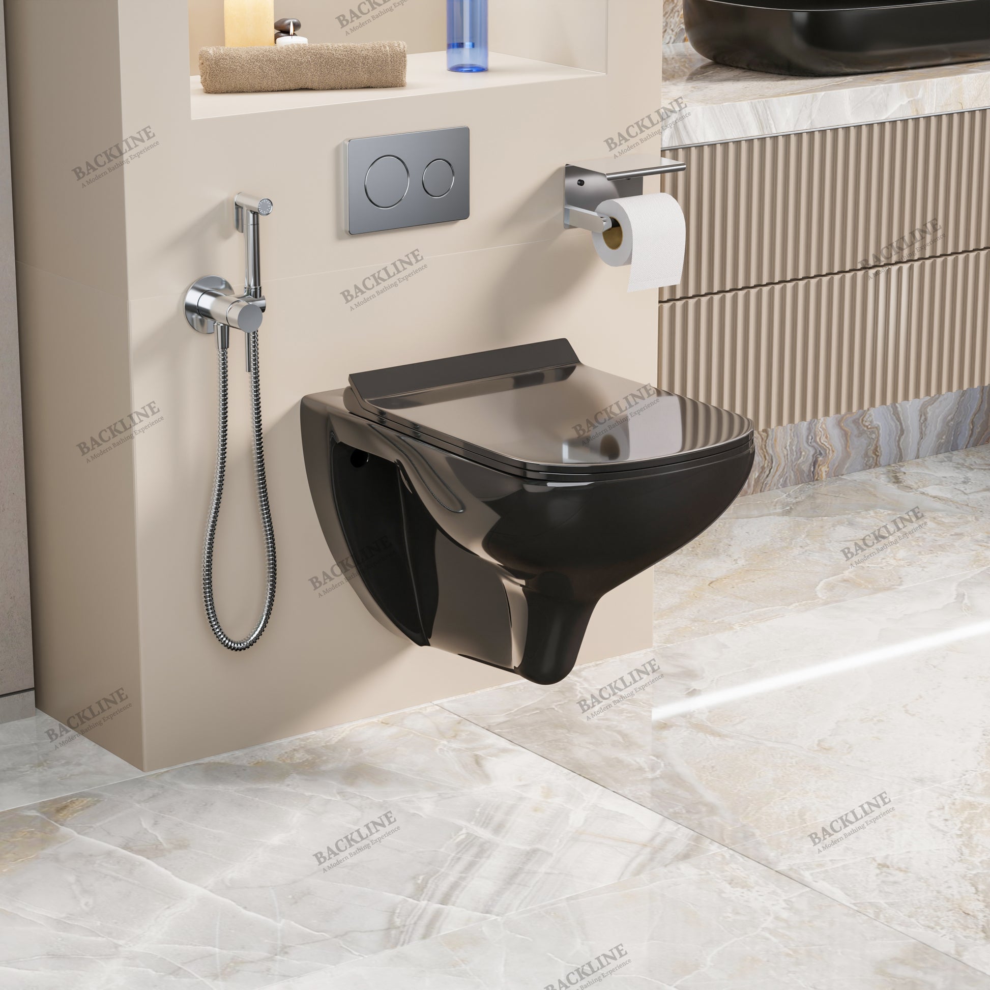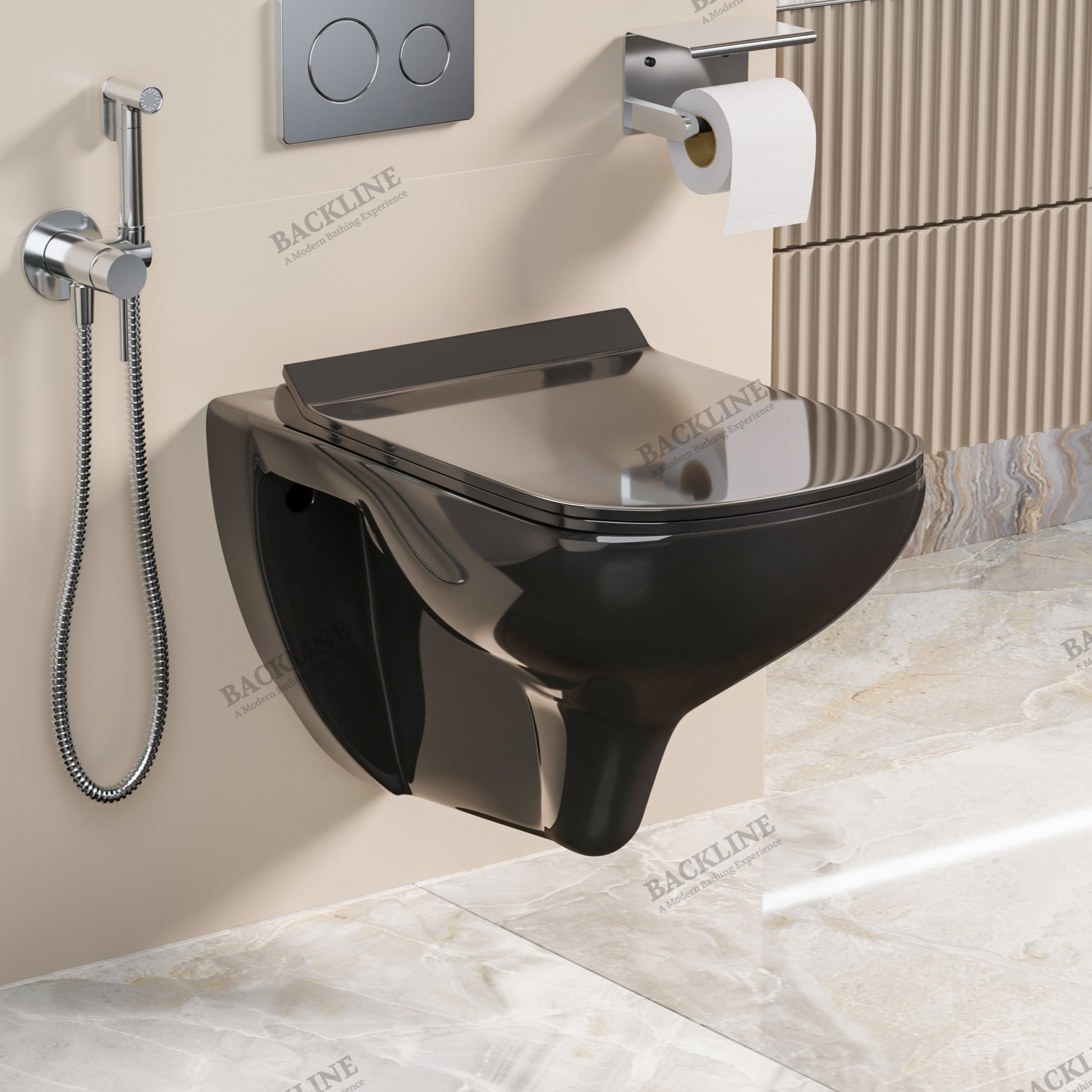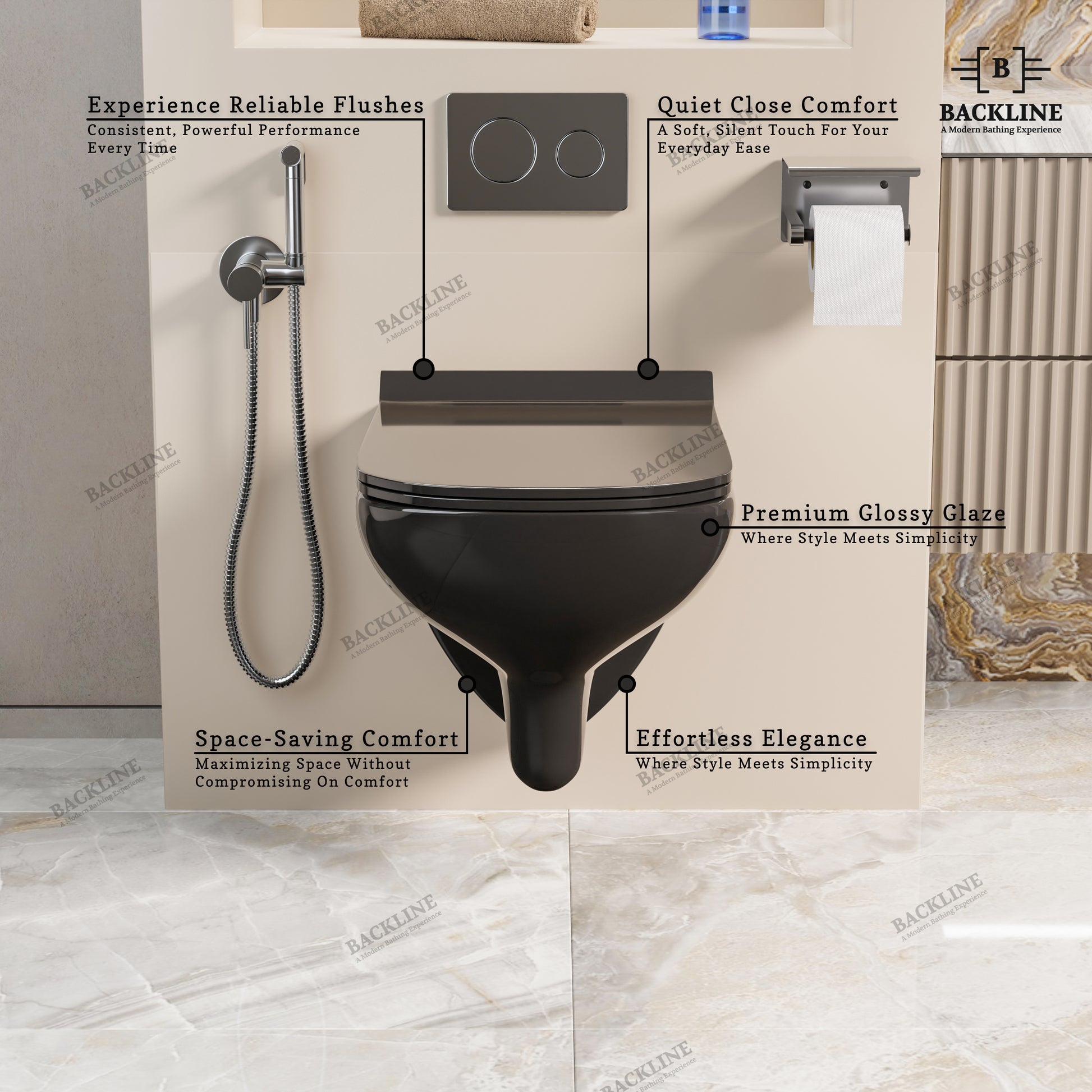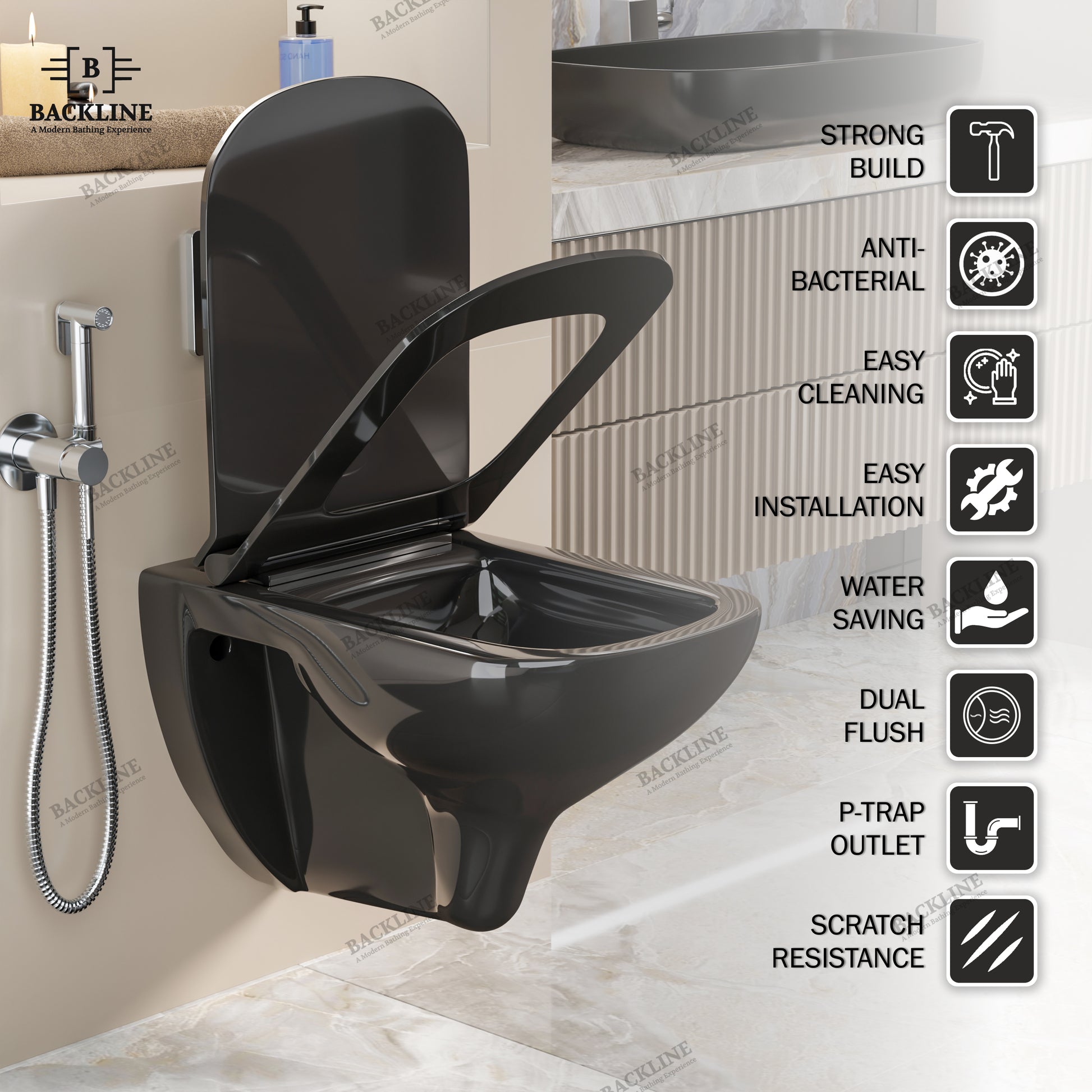 B Backline Ceramic Wall Mount , Wall Hung Western Toilet Commode Black