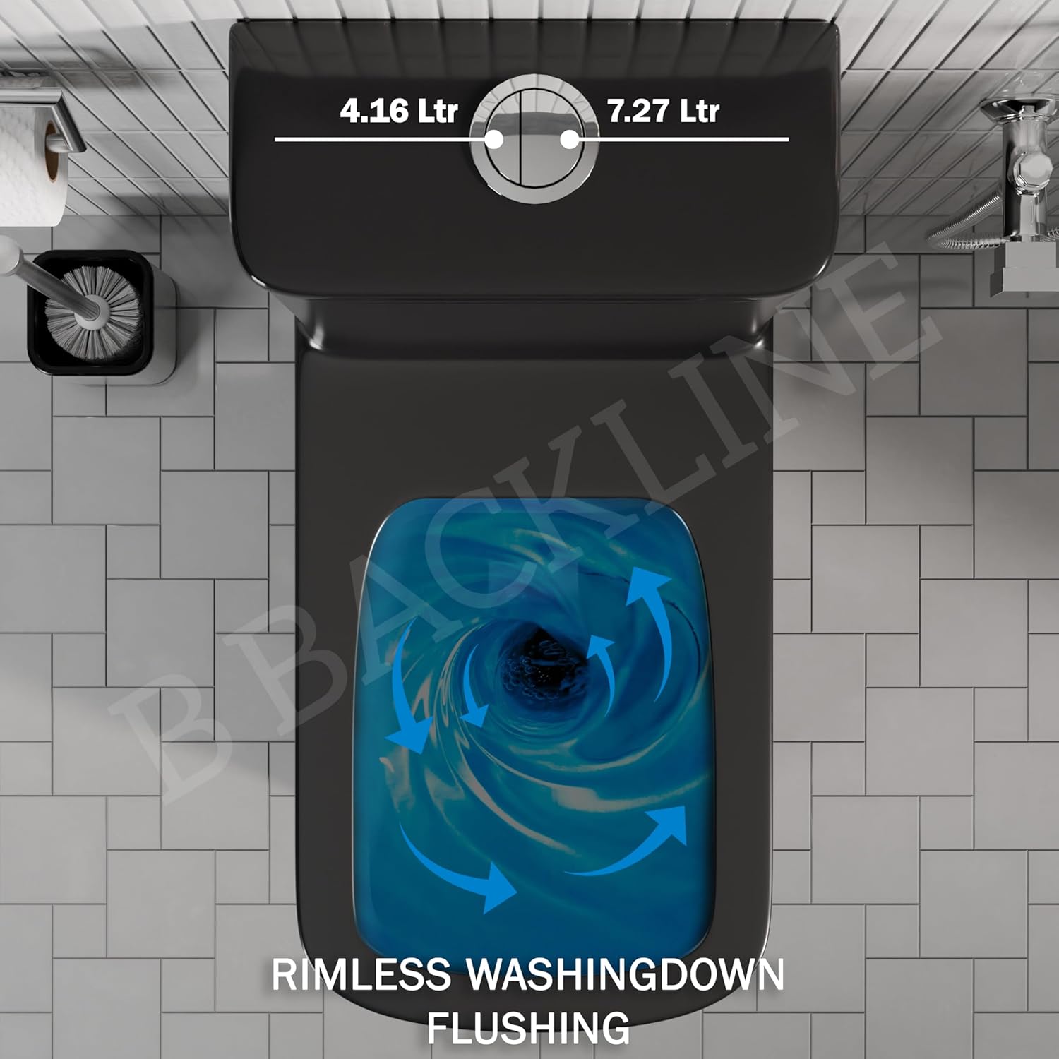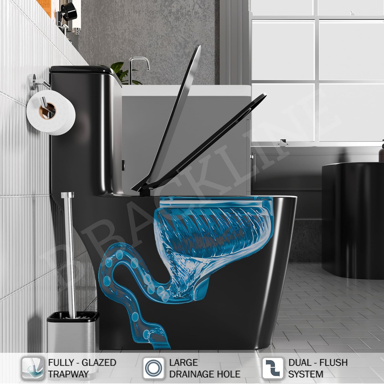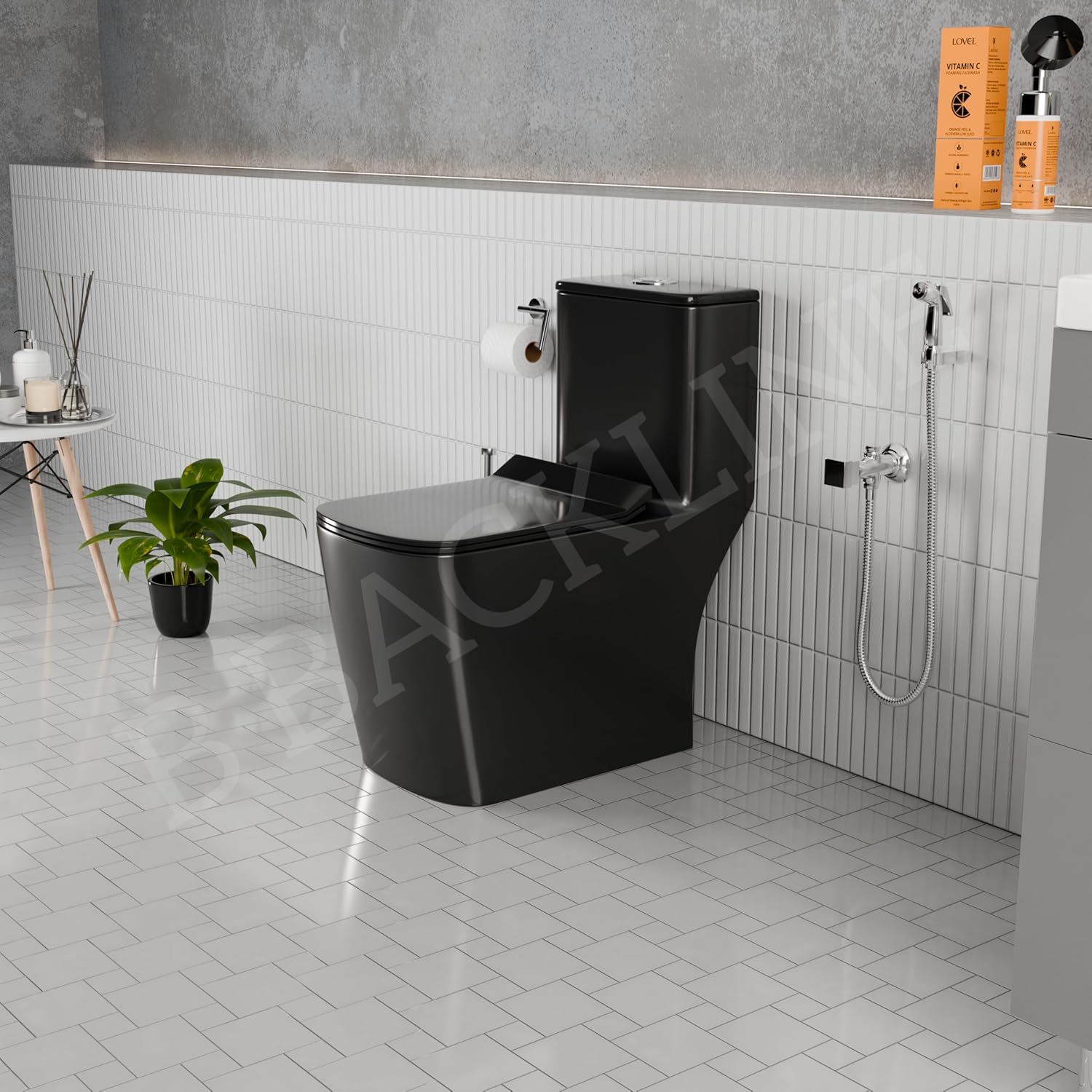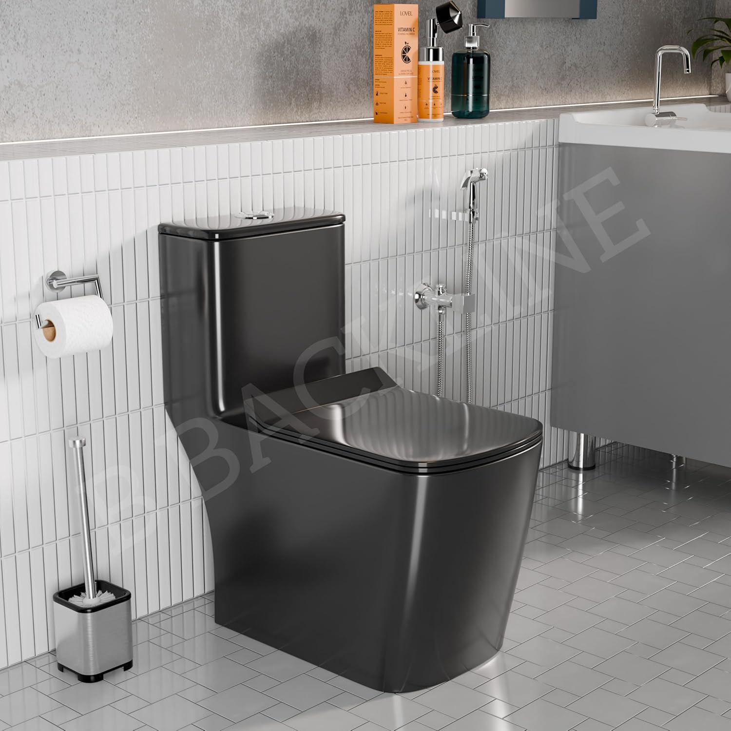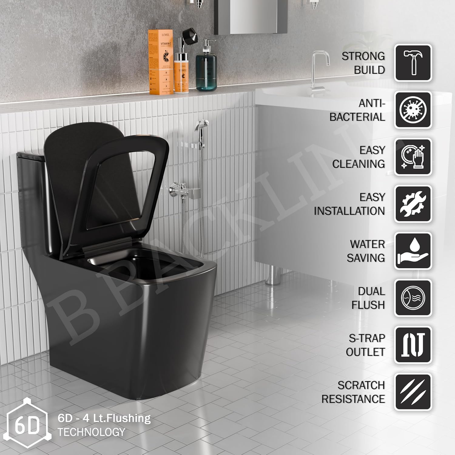 B Backline Ceramic Western One-Piece Toilet Black Commode S-Trap Glossy Finish