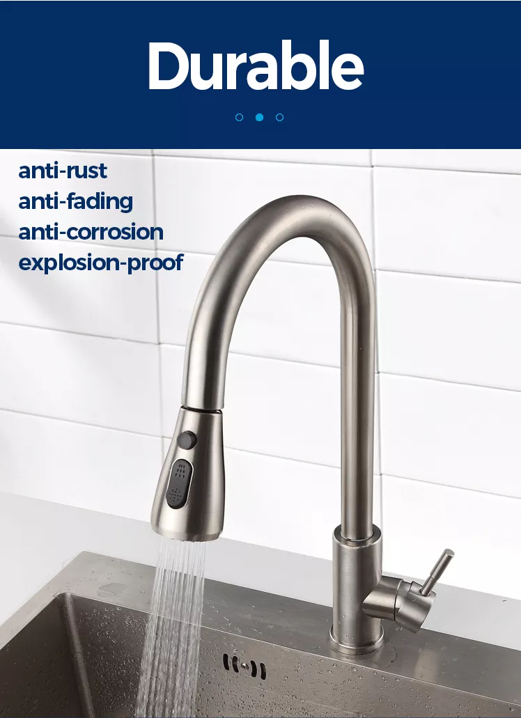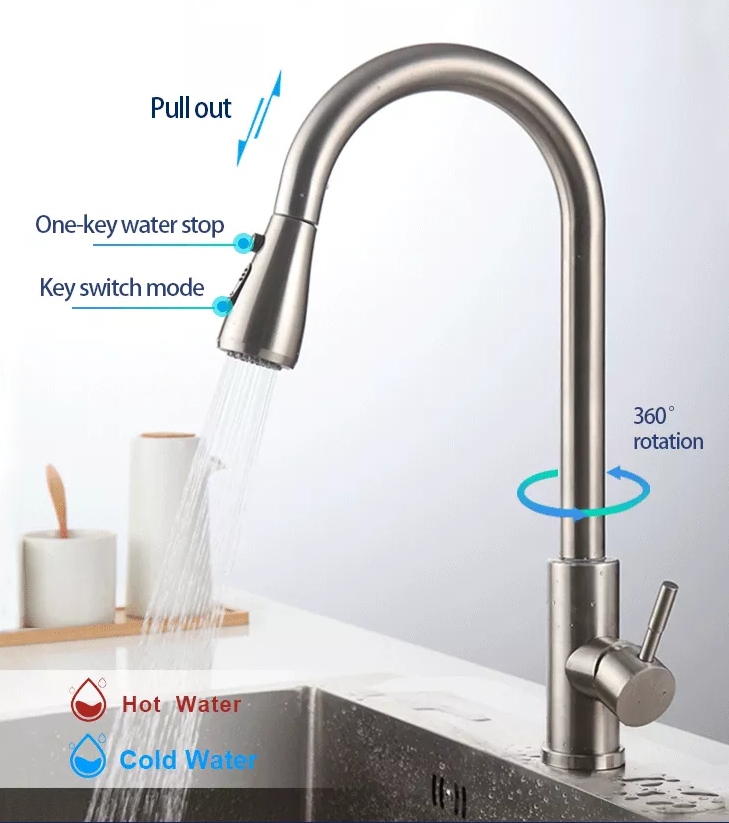 Deck mounted Pulled out Nozzle Single Level Kitchen sink Water Tap Mixer with Spring