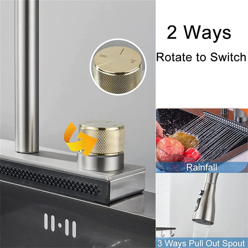 Two spray modes allow you to easily toggle from splash-free aerated stream to powerful pre-rinse spray at the flip of a switch. High arch 360 degree swivel nozzle with 20in pull out hose supply full range of washing for your kitchen sink.