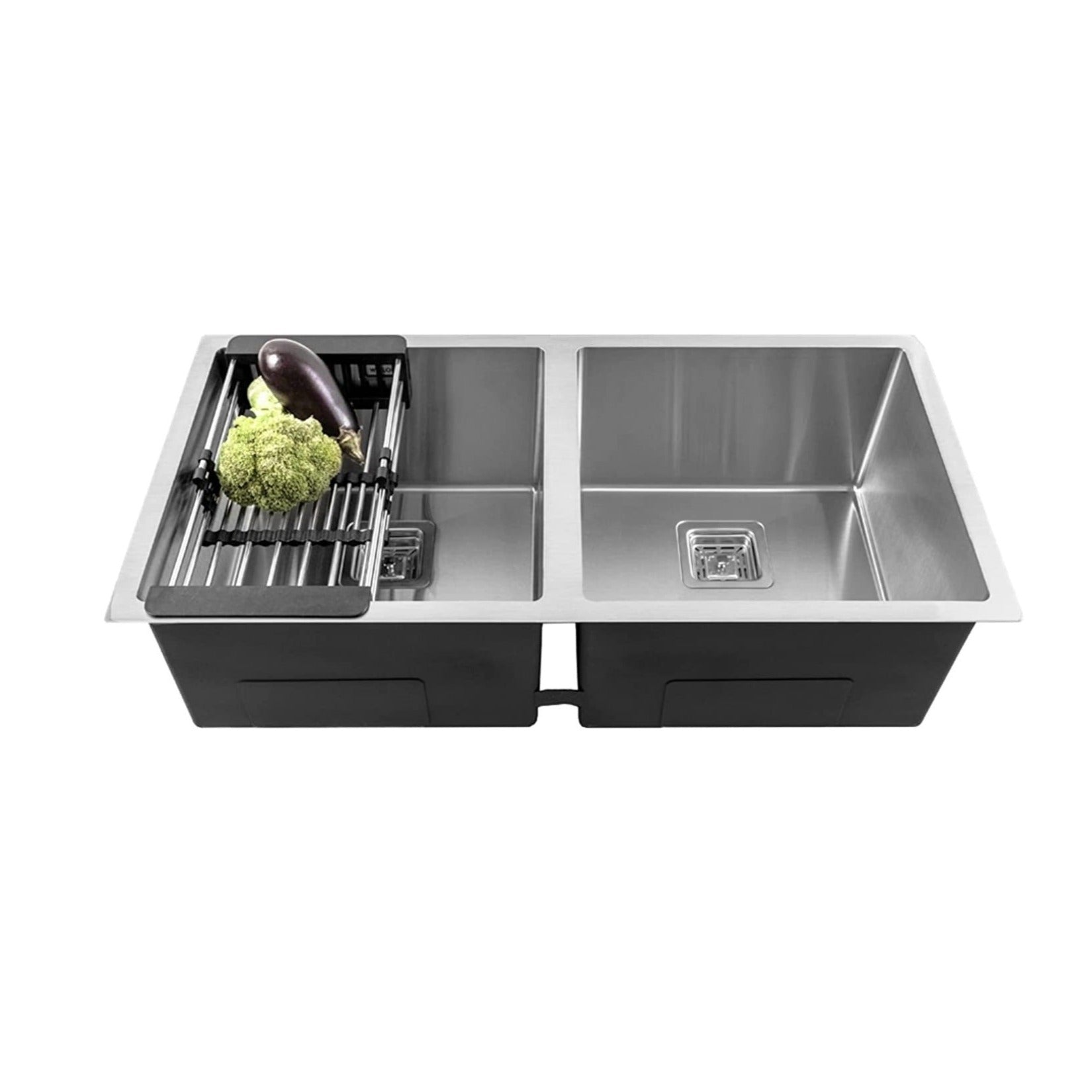 B Backline Handmade Kitchen Sink Double Bowl 1.2 mm 37 x 18 x 9 Inch