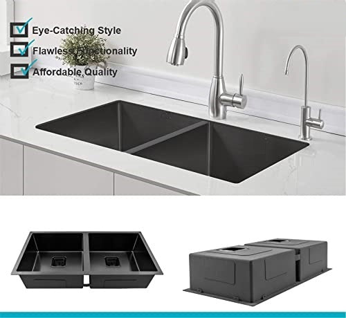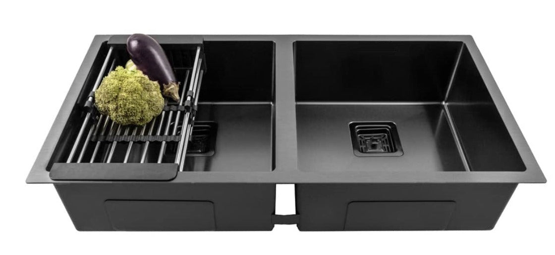 B Backline Kitchen Sink Double Bowl Stainless Steel 1.2 mm 37 x 18 x 9 Inch Nano Black