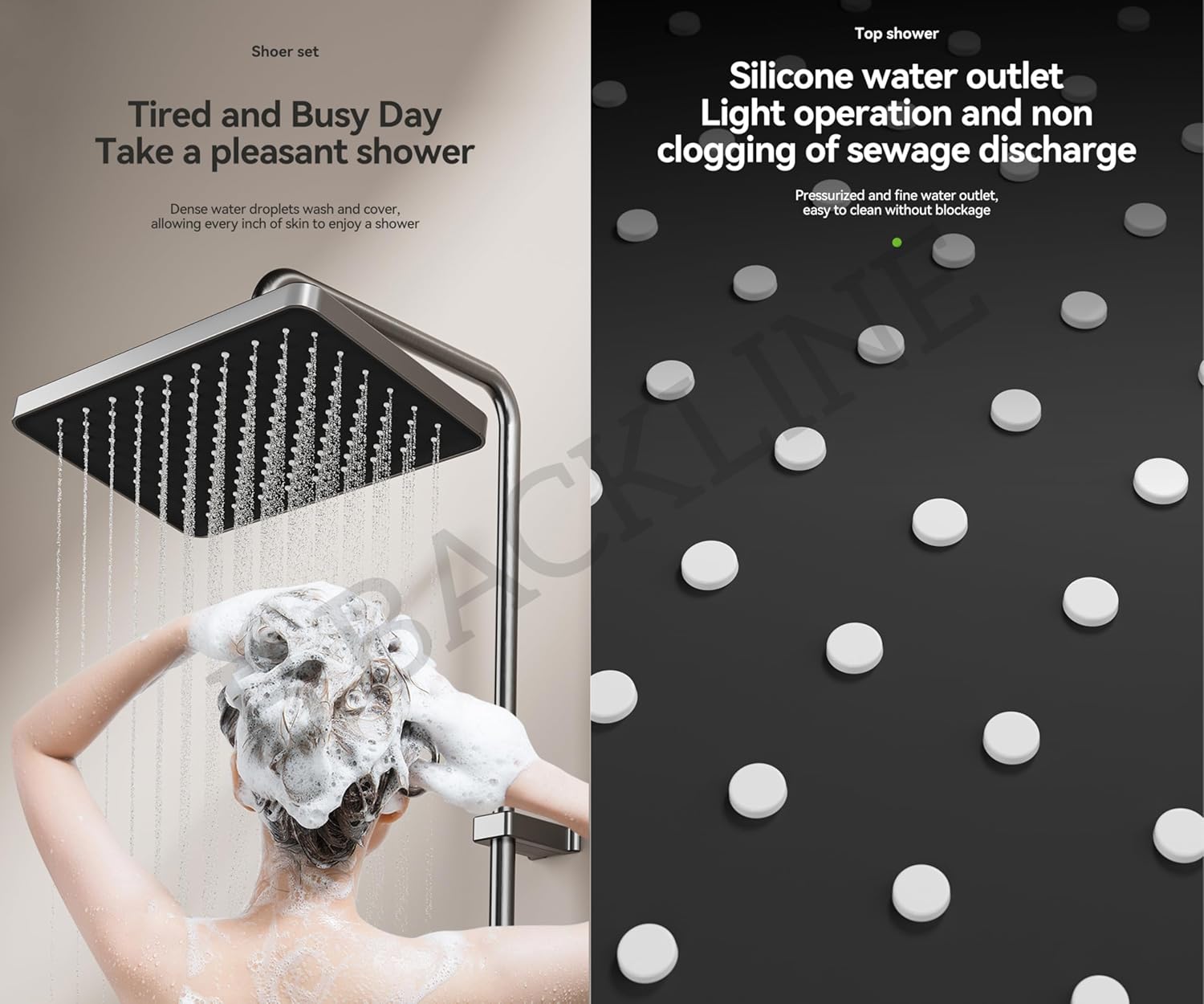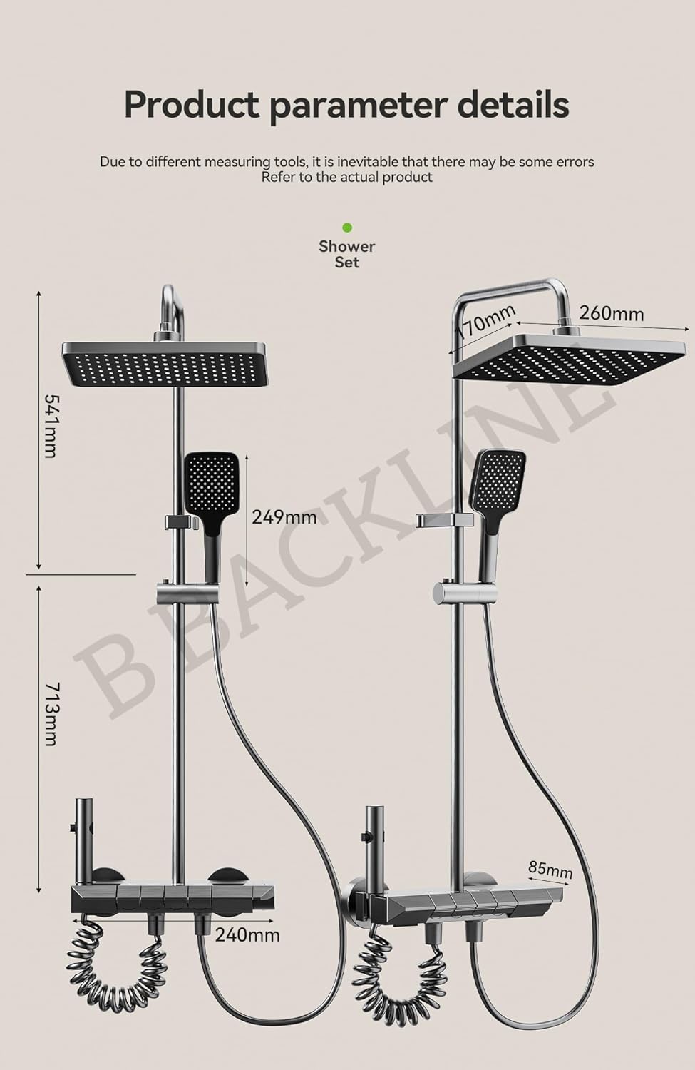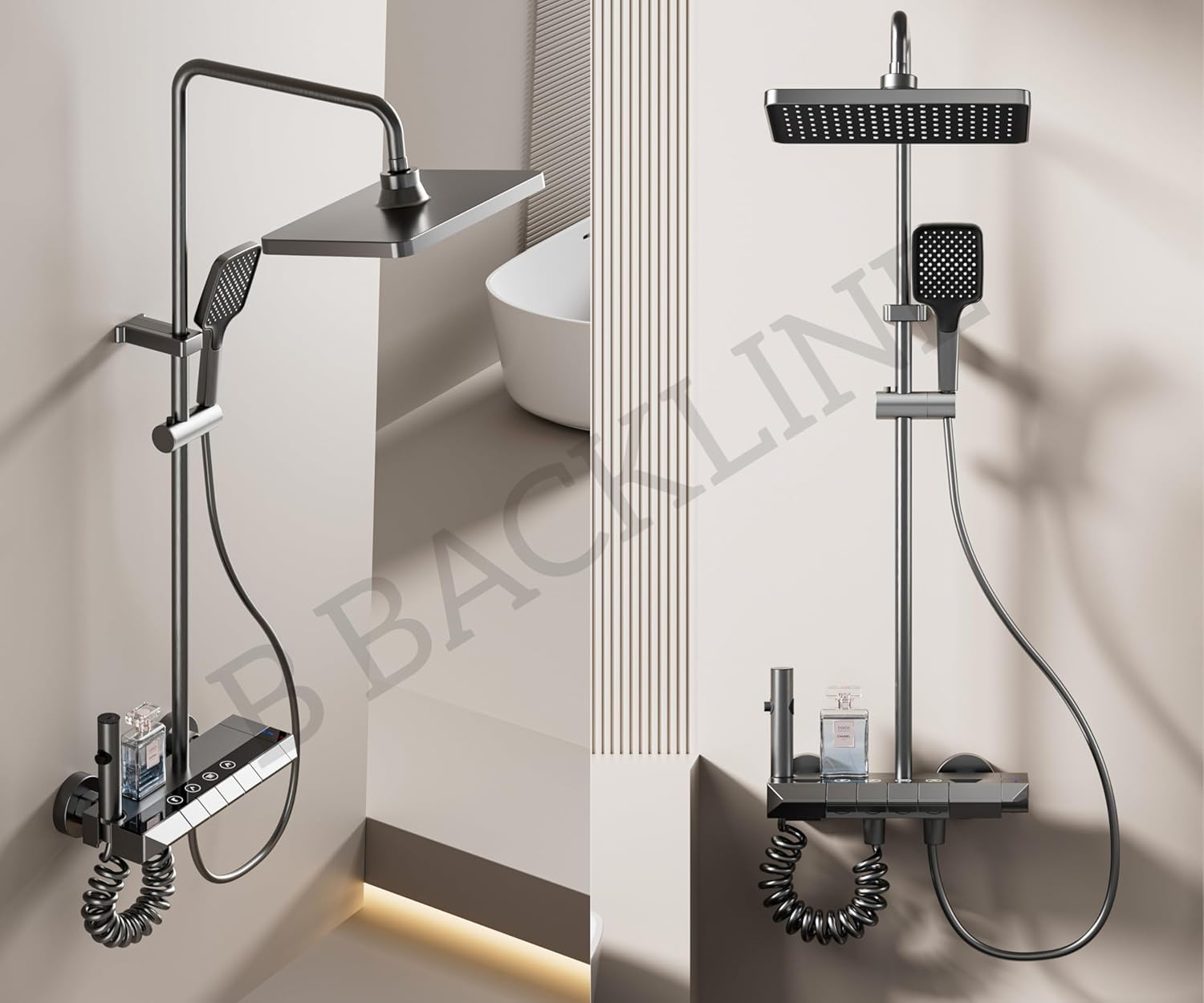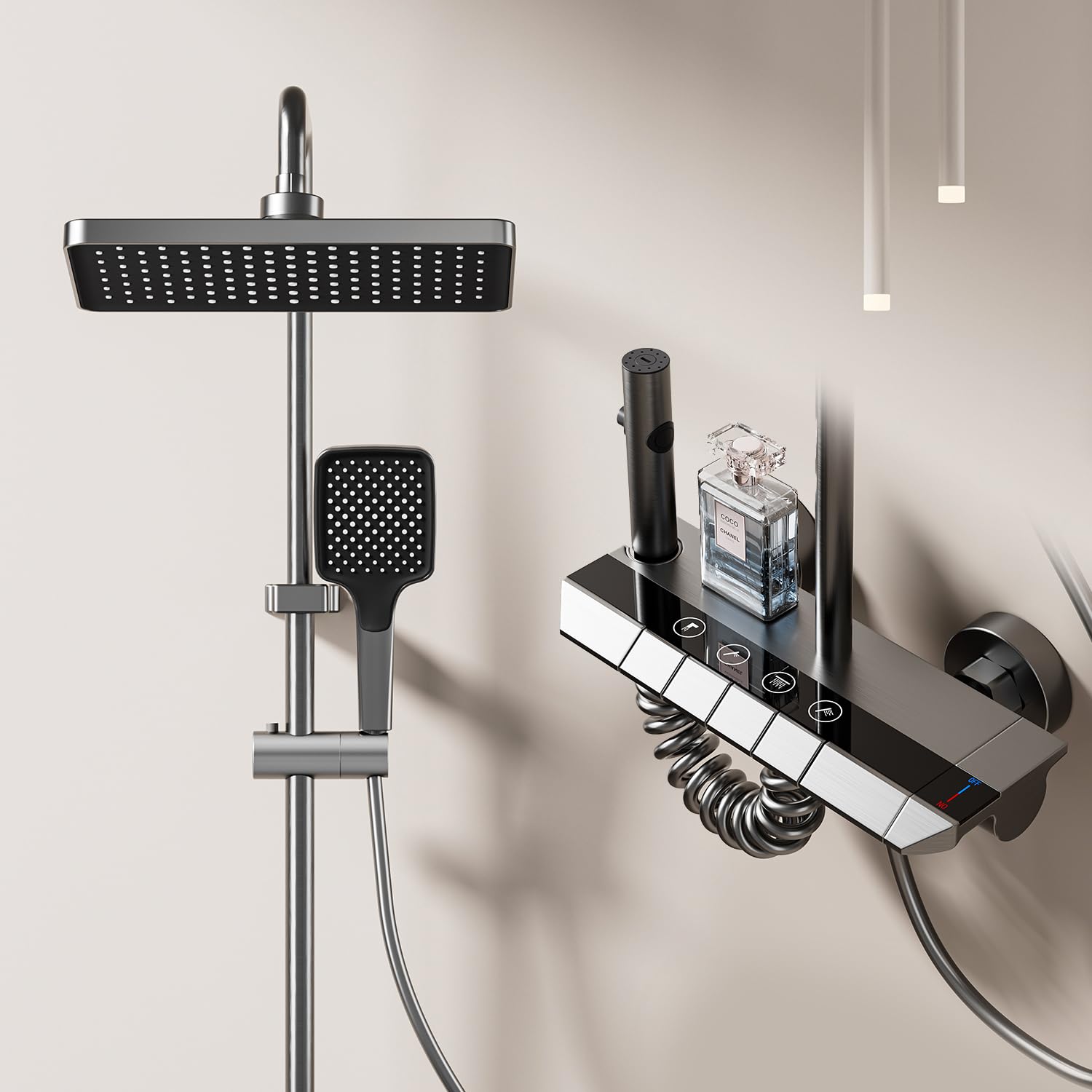Luxury Shower Panel For Bathroom Full Set 4 function Thermostatic Mixer Hot & Cold Shower system, Hand shower | overhead Shower | Jet Spray, Shower Set For Bathrooms (Gun Grey)