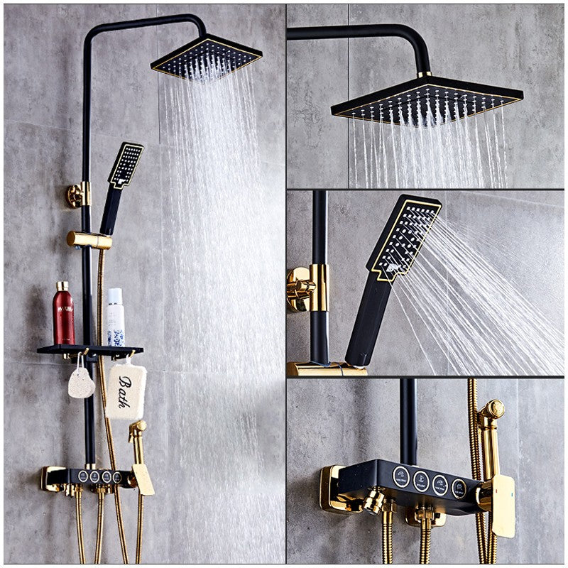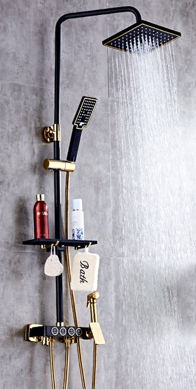B Backline Luxury Shower Panel With Set Rainfall Shower For Bathrooms (Black Gold)