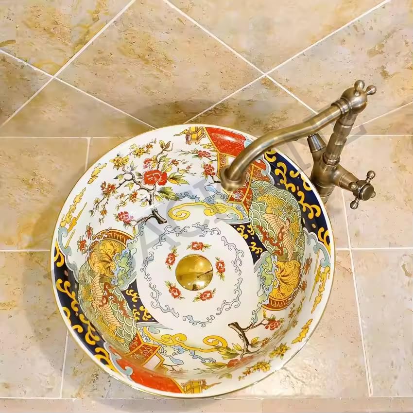 B Backline Ceramic Mexican Wash Basin | Tabletop Ceramic Bathroom Sink | Art Basin | Wash Basin For Bathroom 42 X 42 X 14 Cm