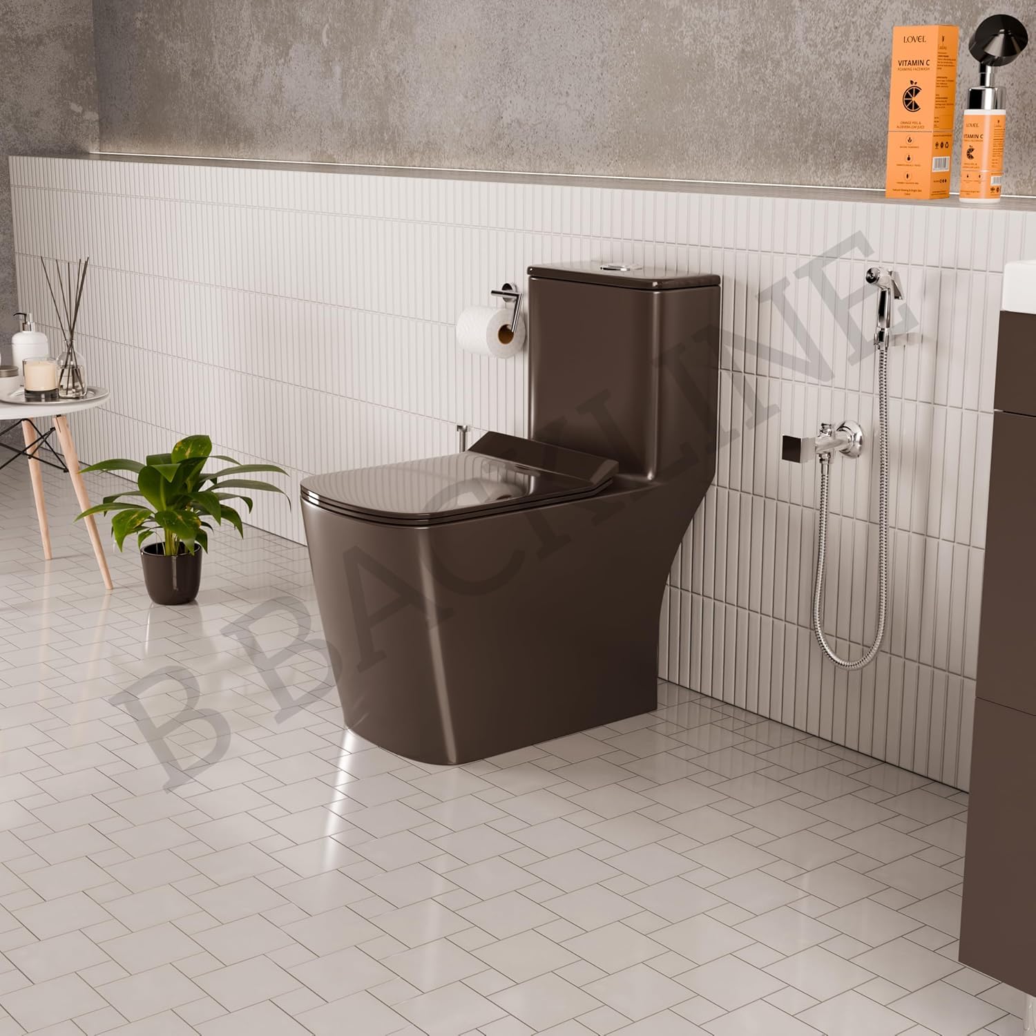 B Backline Ceramic Western Toilet One-Piece Commode Brown Color S-Trap