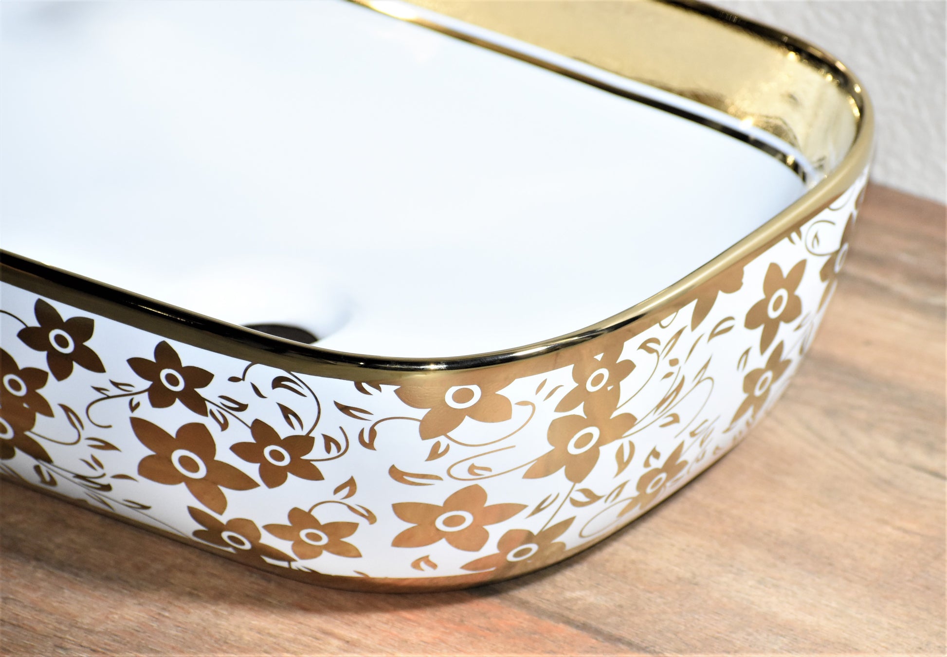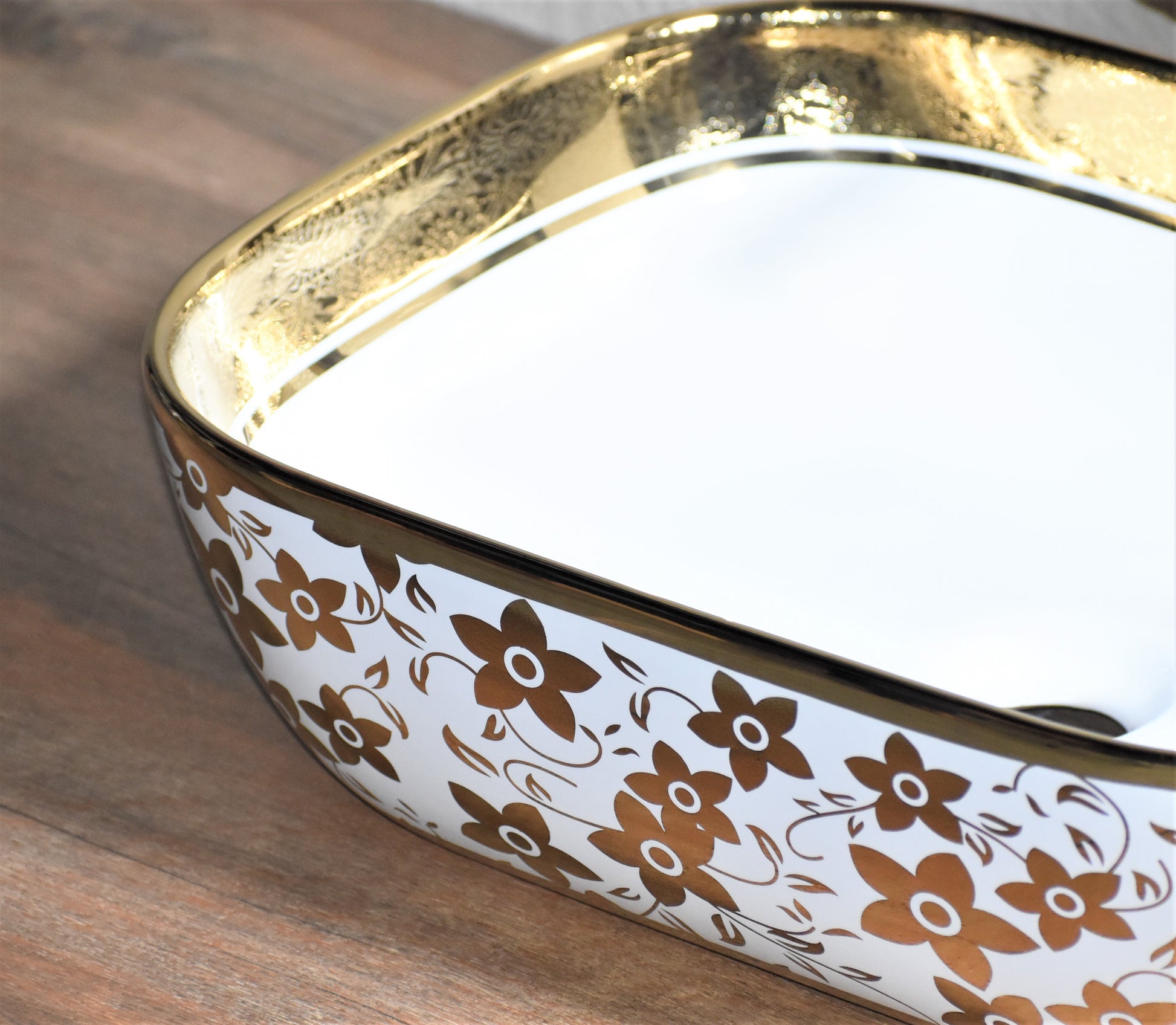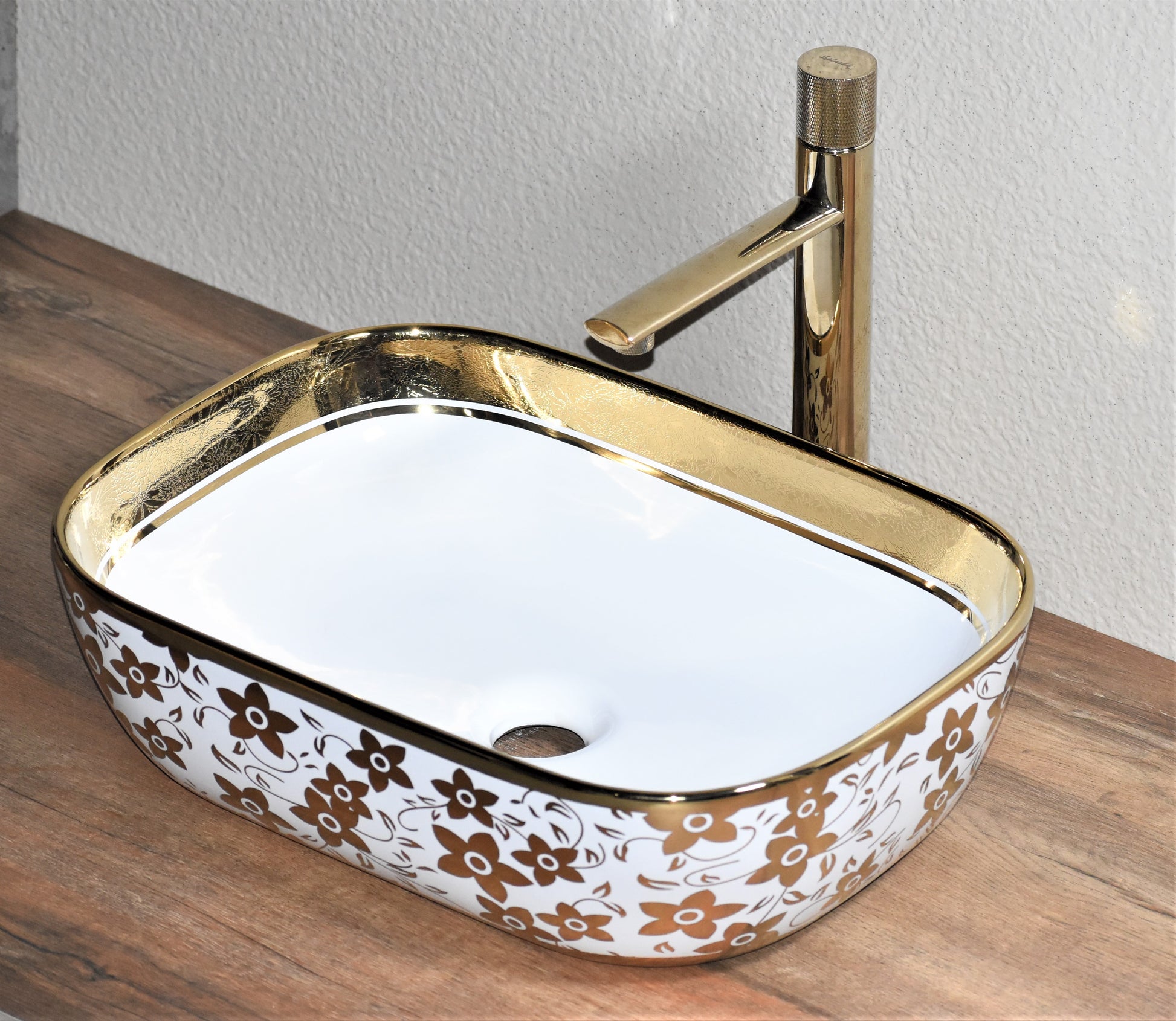Ceramic Rectangle Counter Top Wash Basin Golden Color